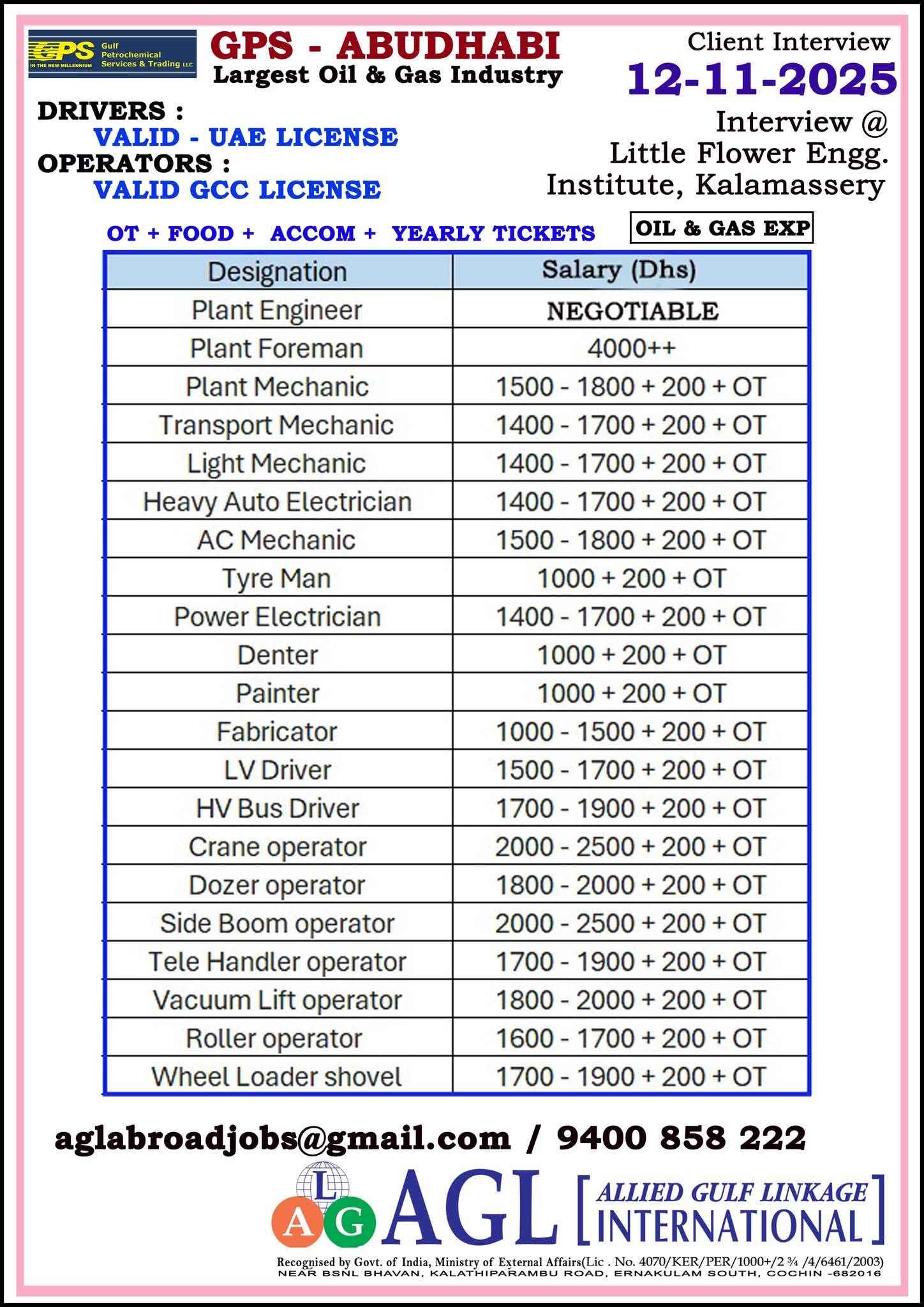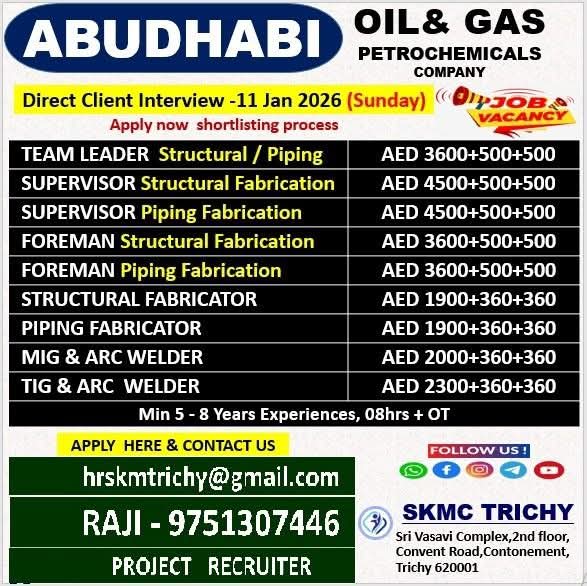 CLIENT INTERVIEW ON 26TH JULY 2025 ABU DHABI Leading Contracting Company requires for their Oil & Gas