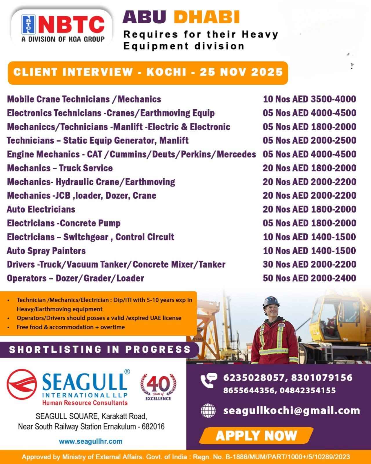 URGENT REQUIREMENT FOR NBTC ABUDHABI