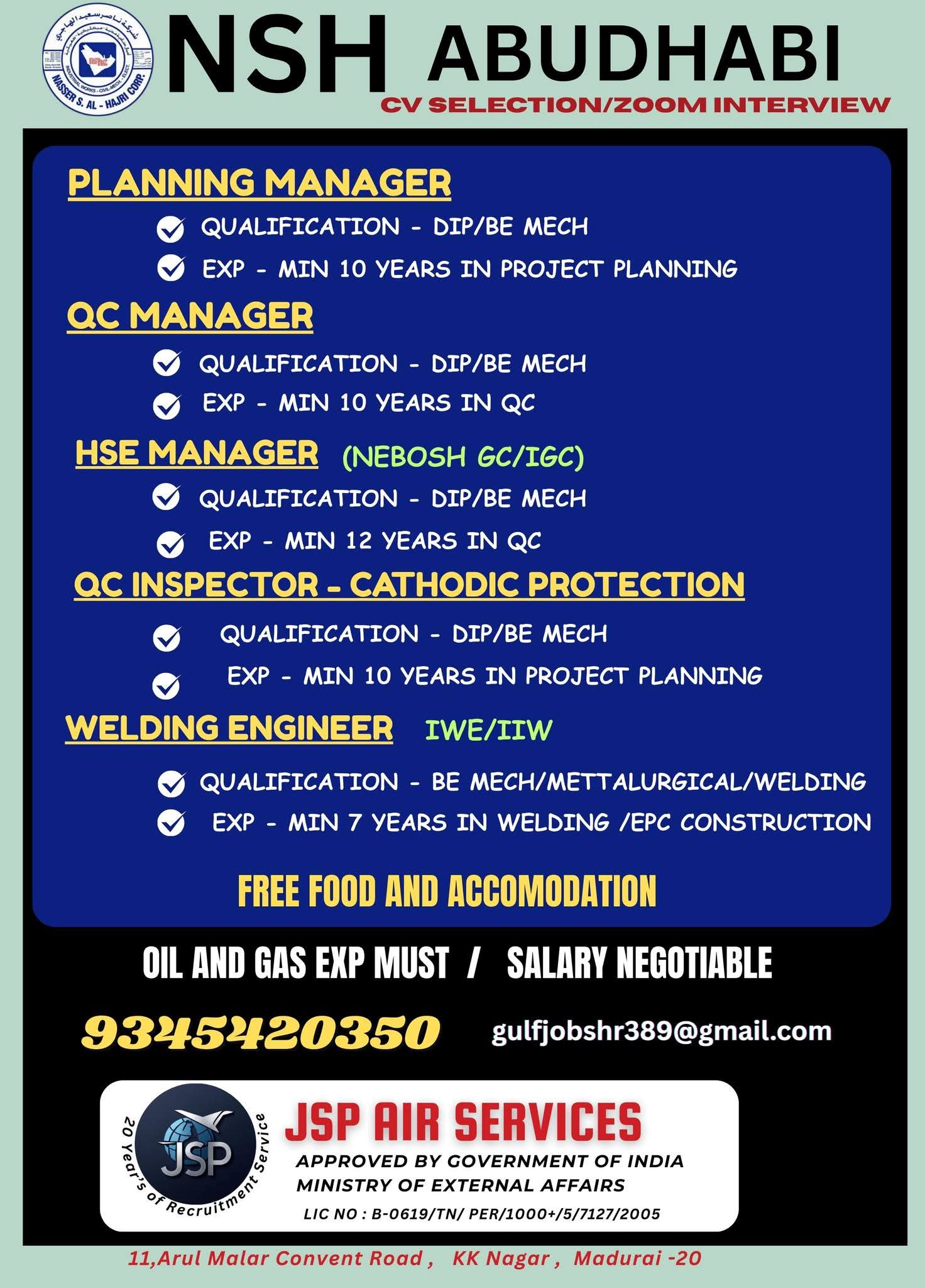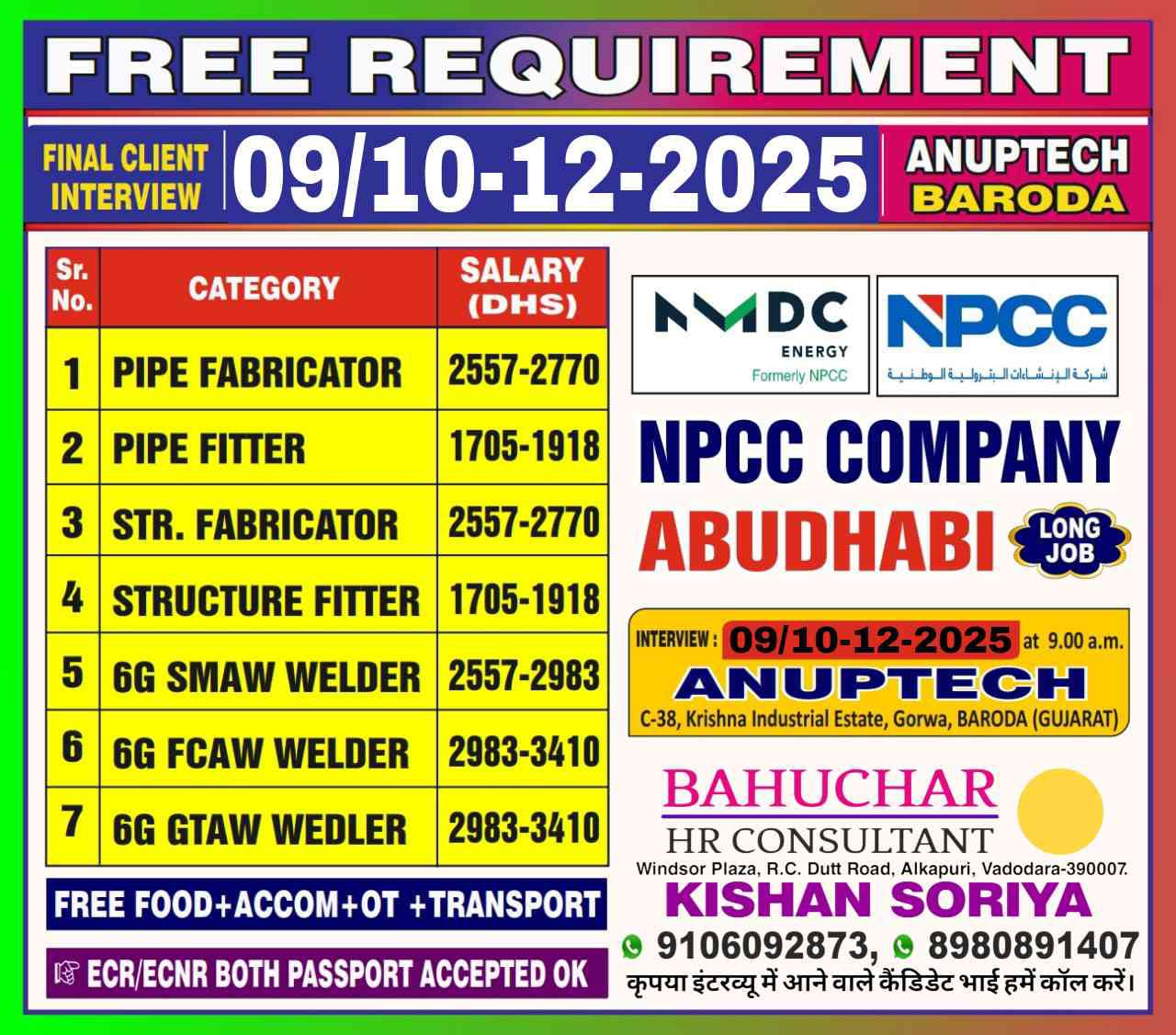 Urgent Requirement For NPCC COMPANY ABUDHABI
