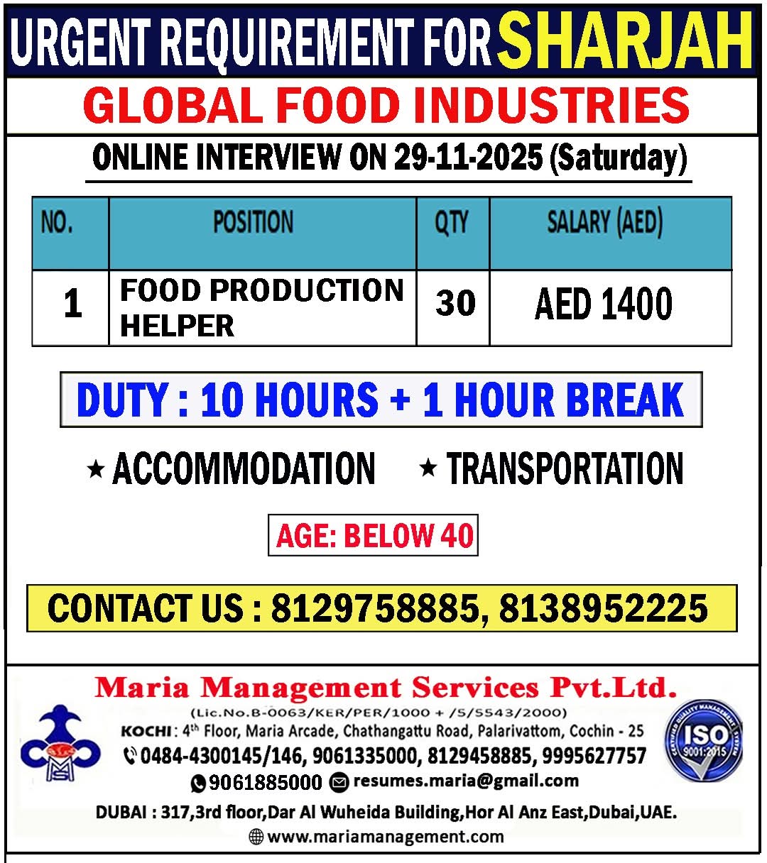 WE ARE HIRING FOR SHARJAH & FUJAIRAH