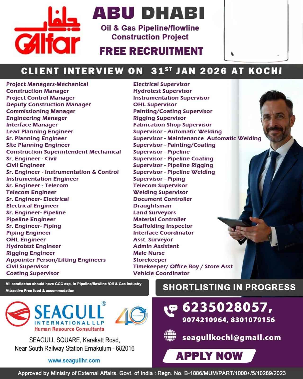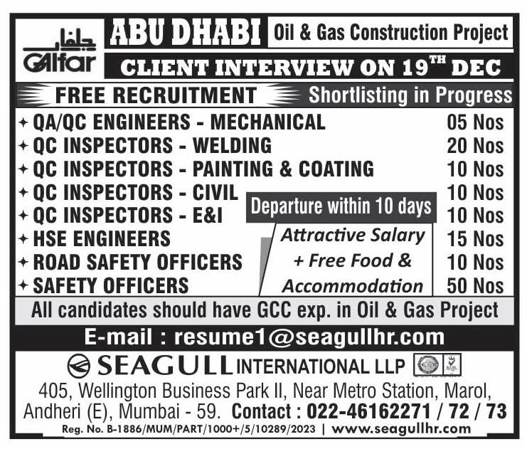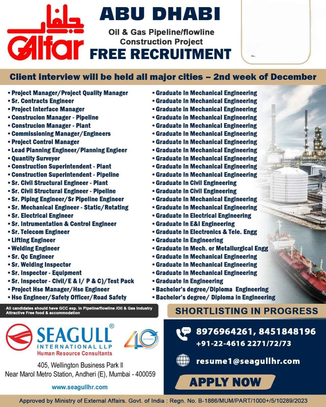 ABU DHABI Galfar Oil & Gas /Pipeline Construction Project RECRUITMENT