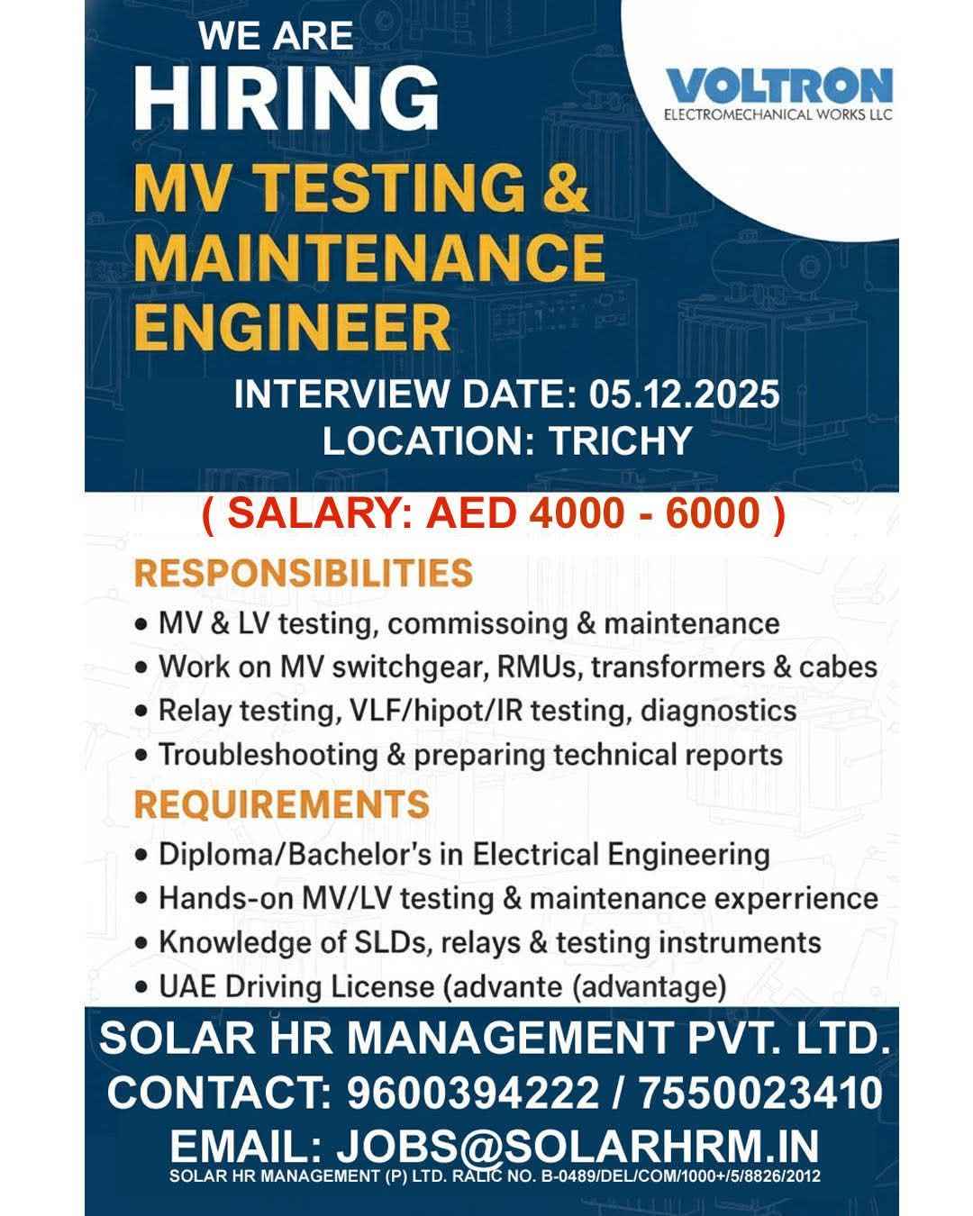 Hiring For MV TESTING & MAINTENANCE ENGINEER