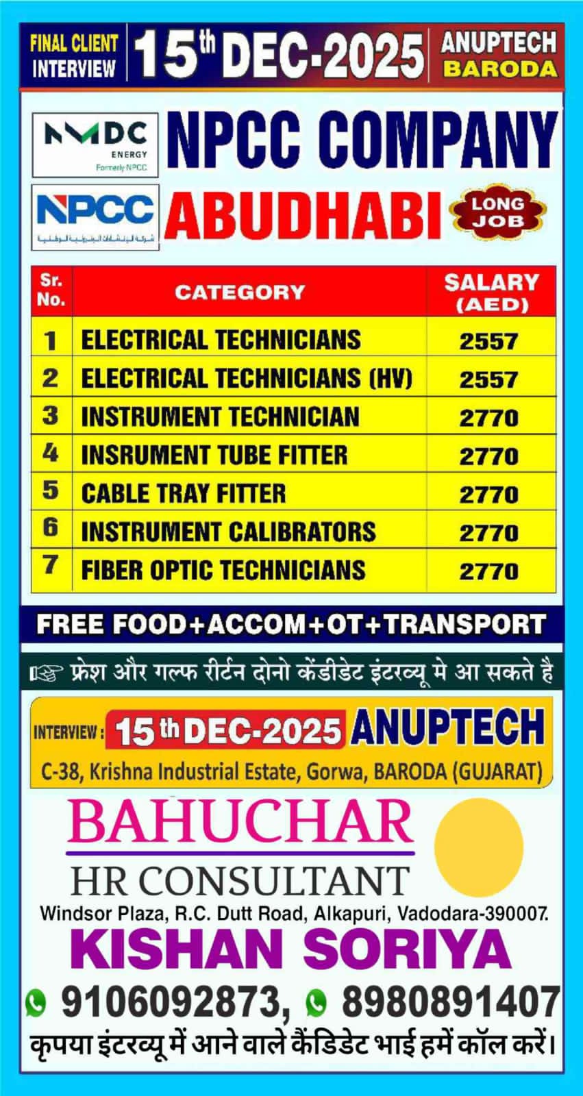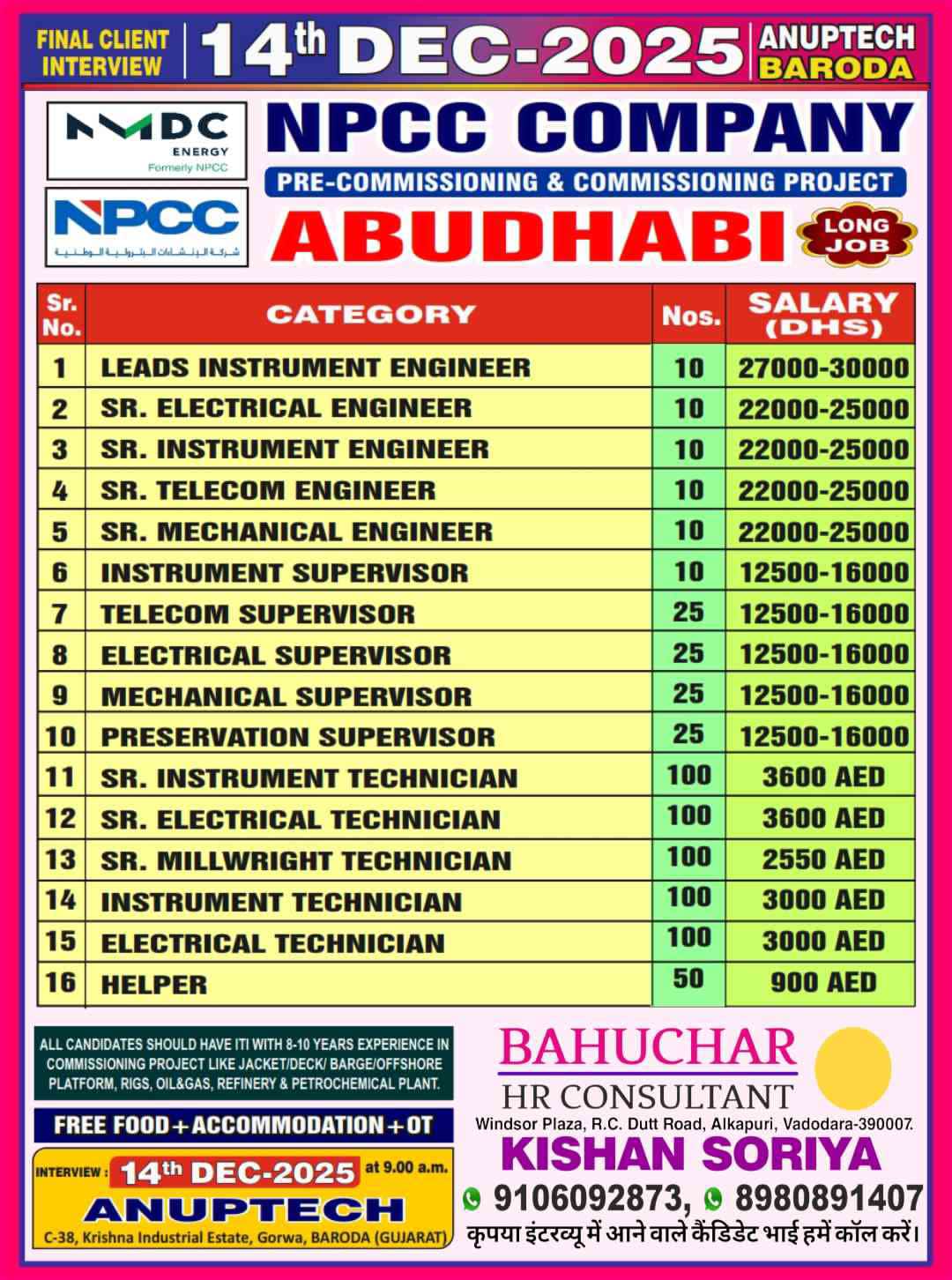 Urgent Requirement NPCC COMPANY ABUDHABI