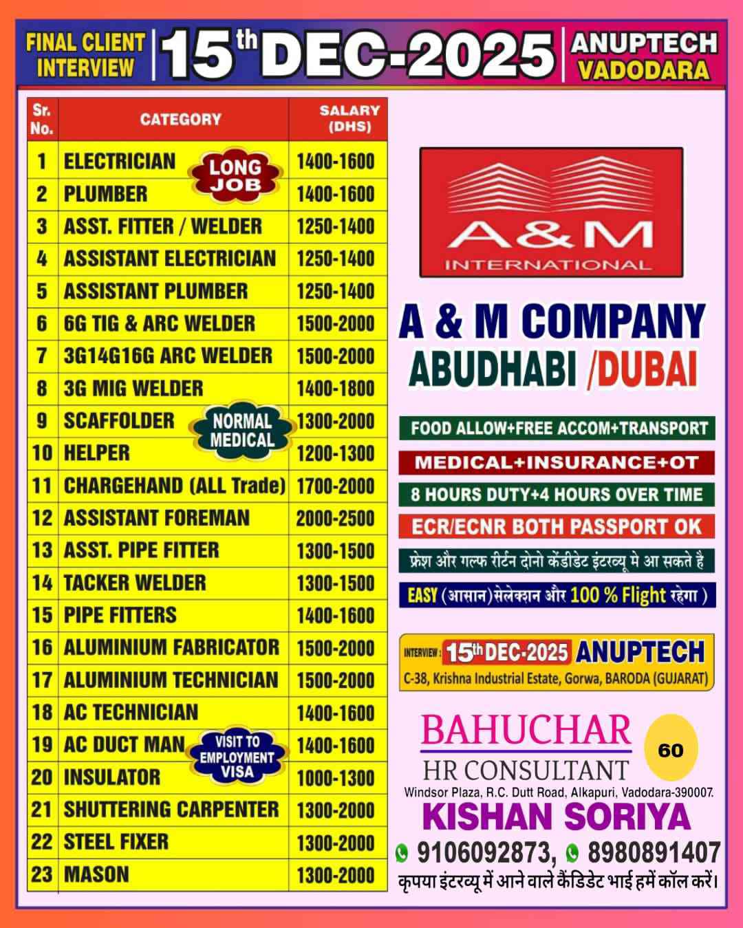 Urgent Requirement A & M COMPANY ABUDHABI/DUBAI