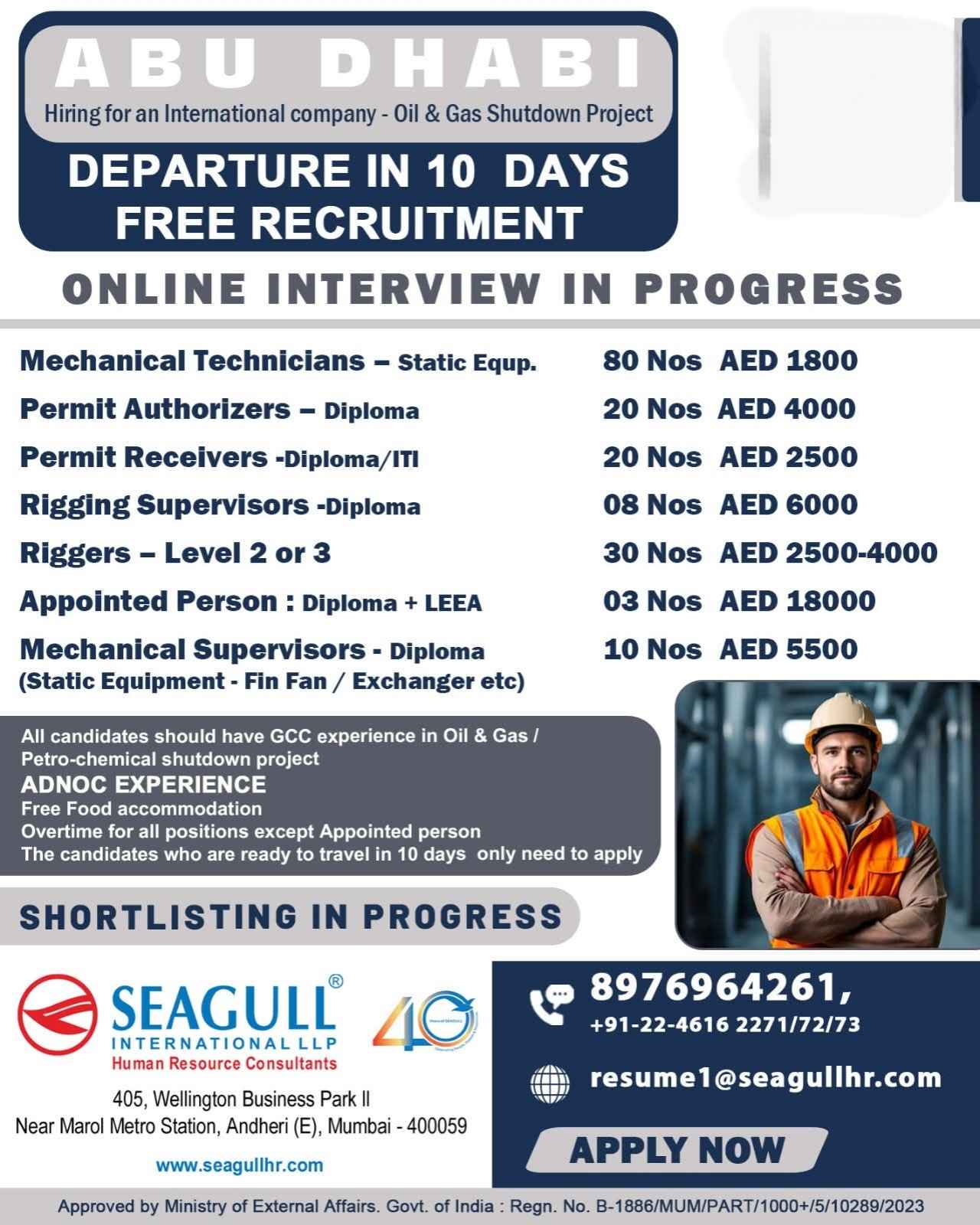 ABU DHABI Hiring for an International company - Oil & Gas Shutdown Project