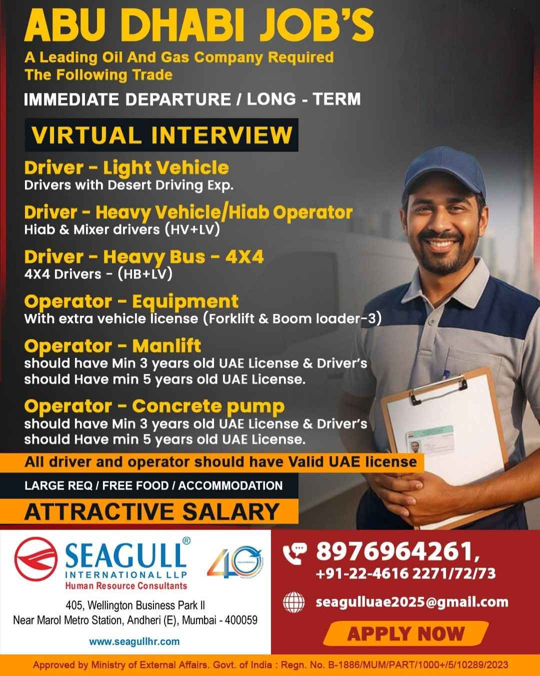Urgent Requirement For ABU DHABI