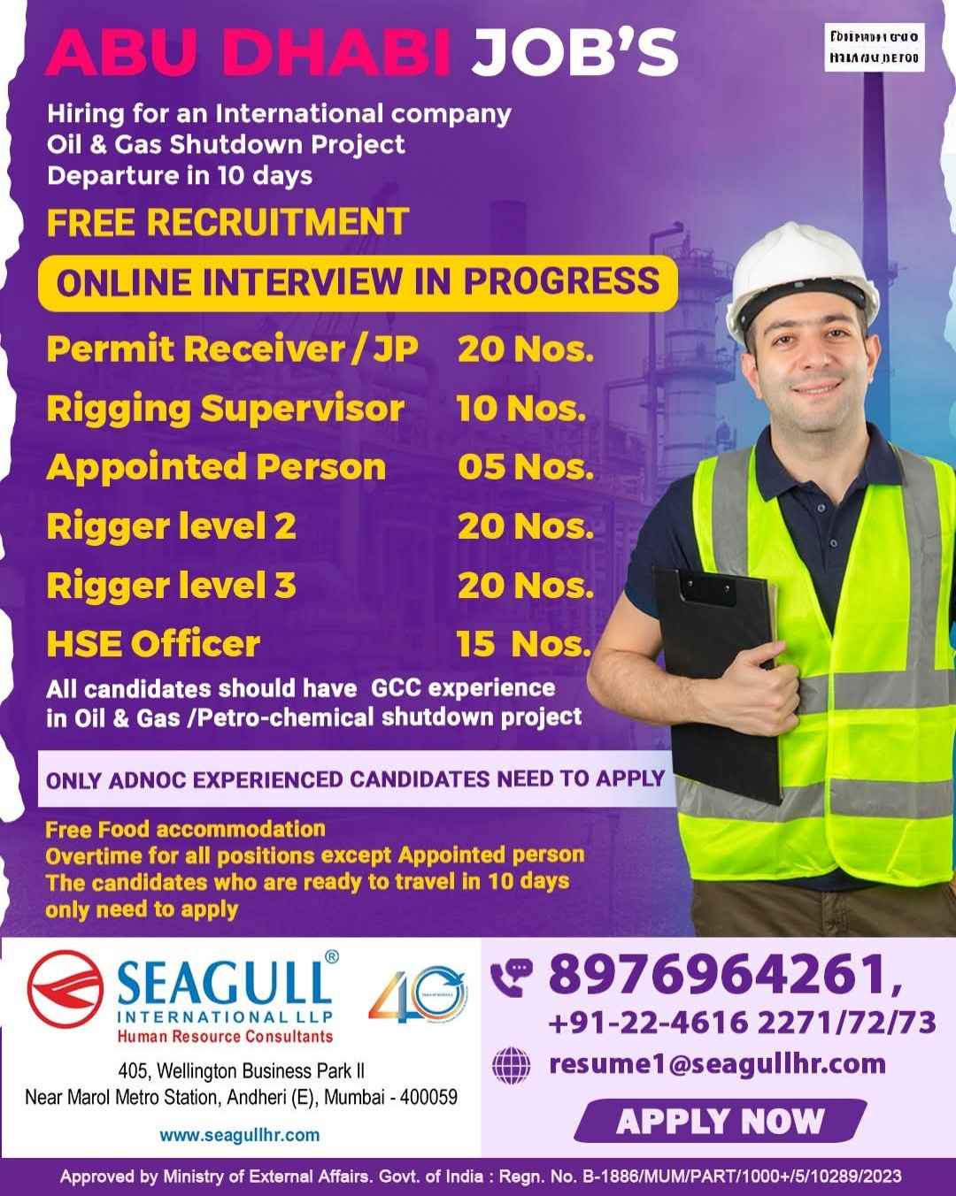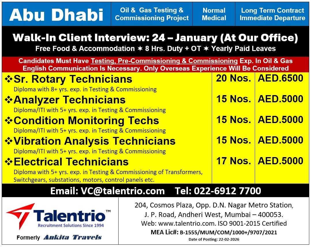 ABU DHABI JOB'S Hiring for an International company Oil & Gas Shutdown Project
