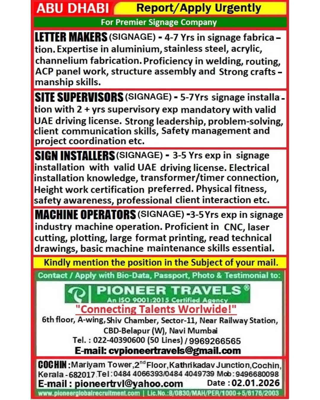 URGENT RECRUITMENT FOR ABU DHABI