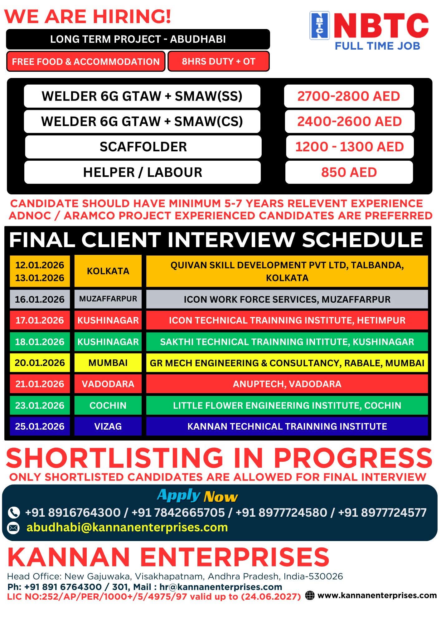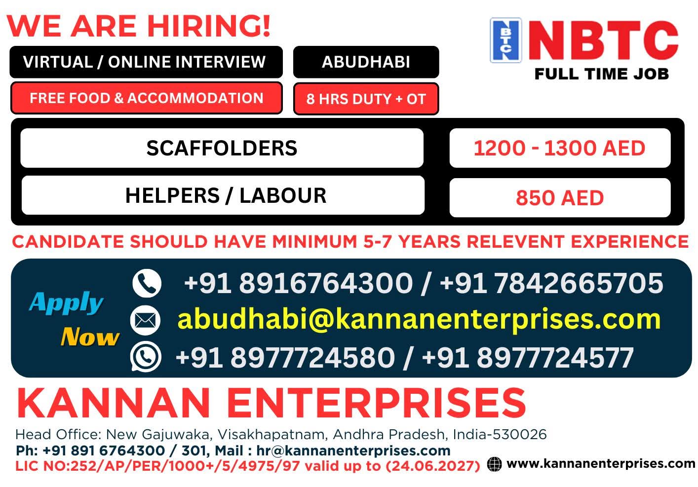 Urgent Requirement For NBTC, ABUDHABI