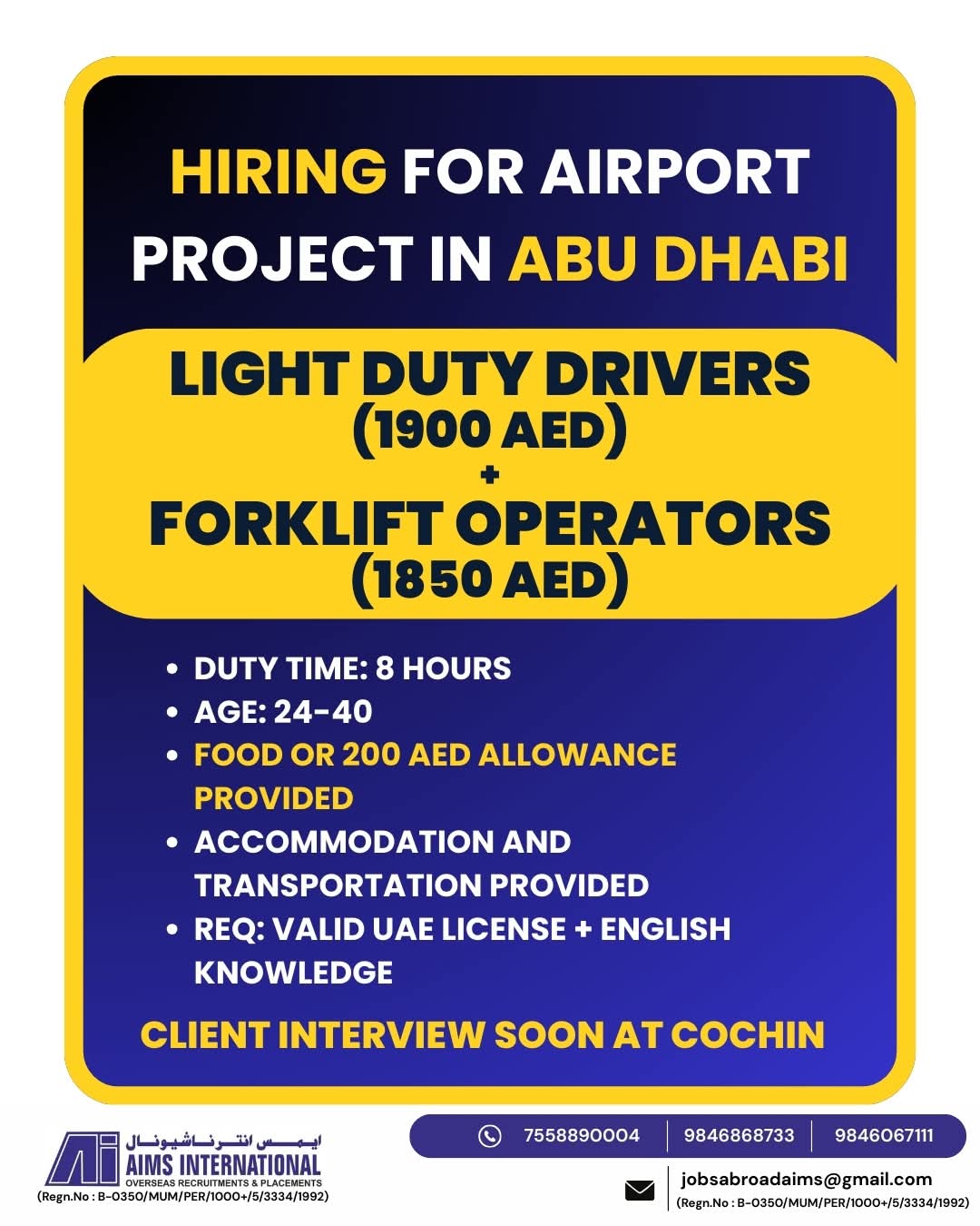 URGENT HIRING FOR ABU DHABI