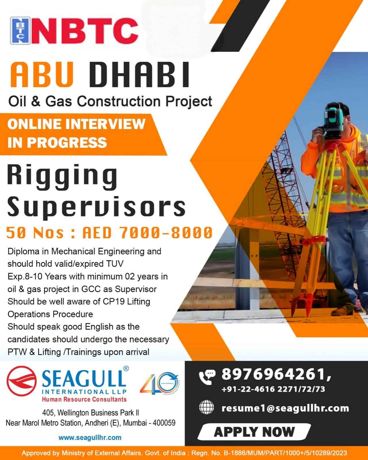 Urgent Requirement NBTC ABUDHABI