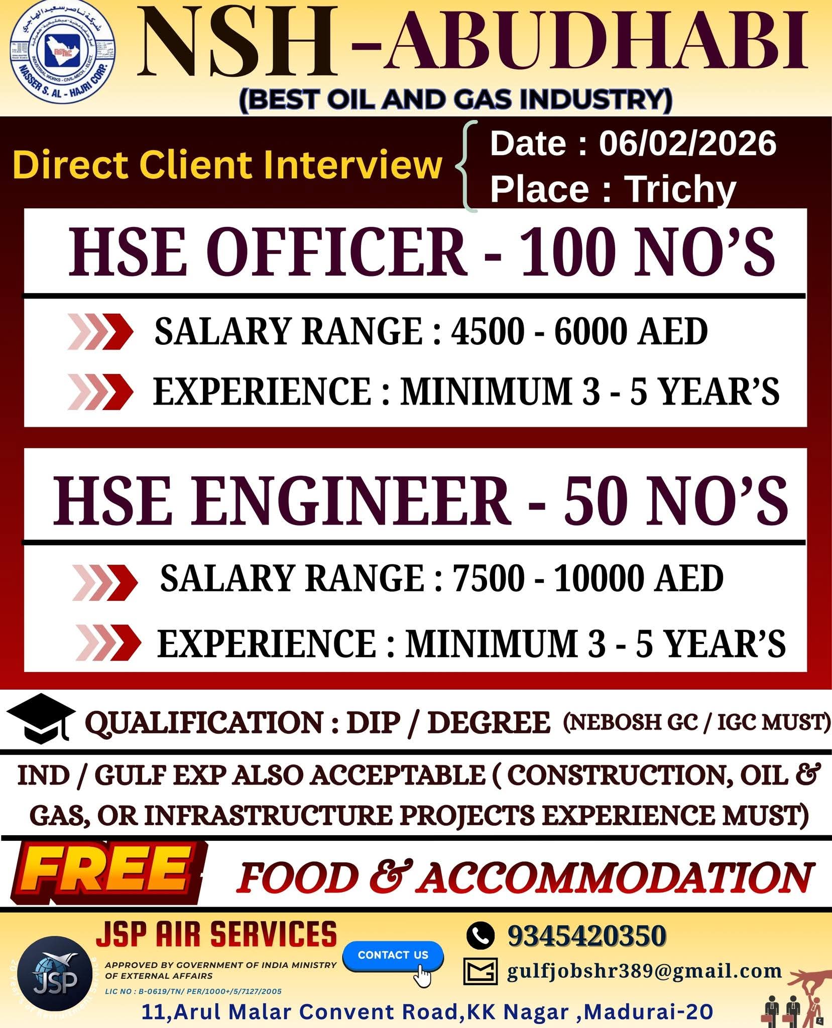 Urgent Requirement For NSH ABU DHABI