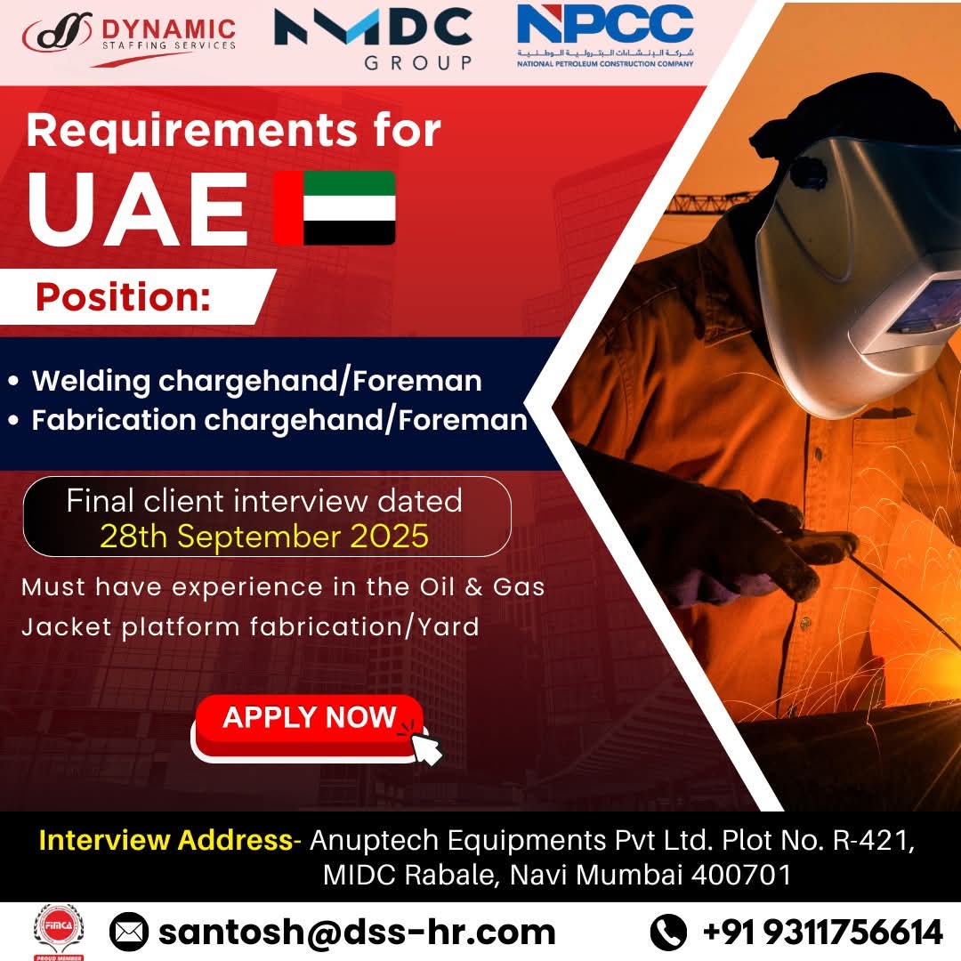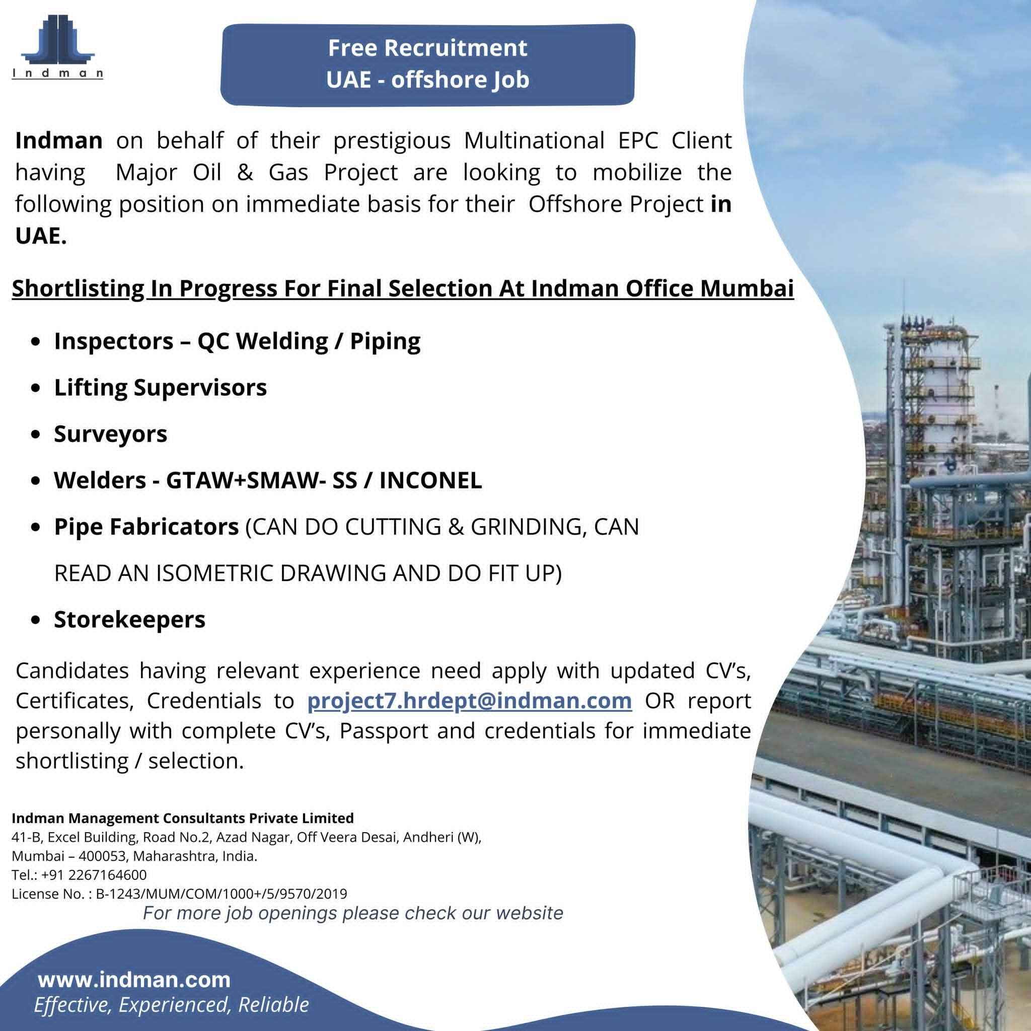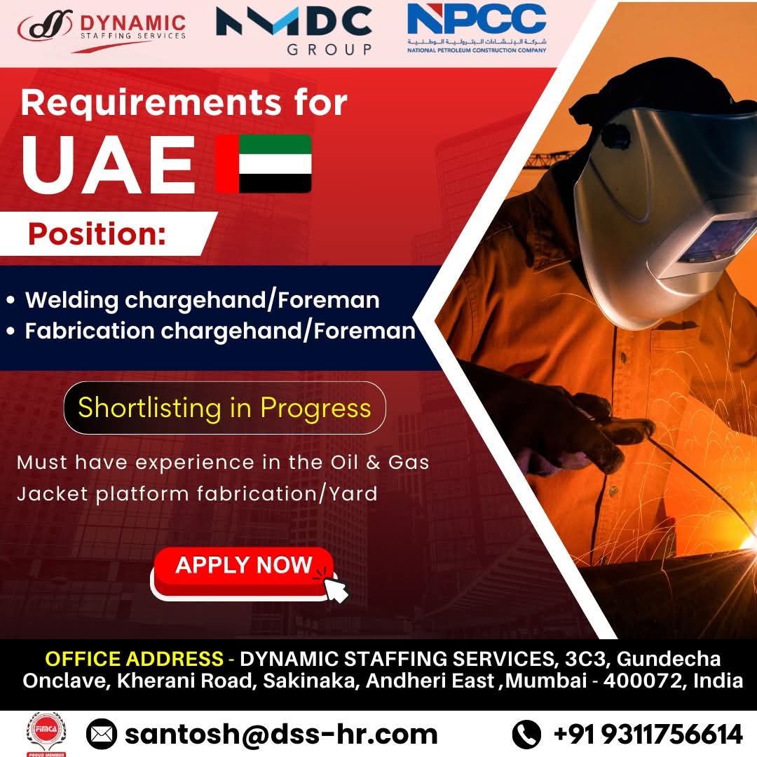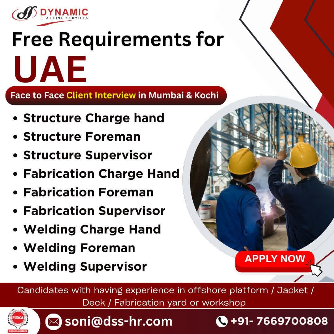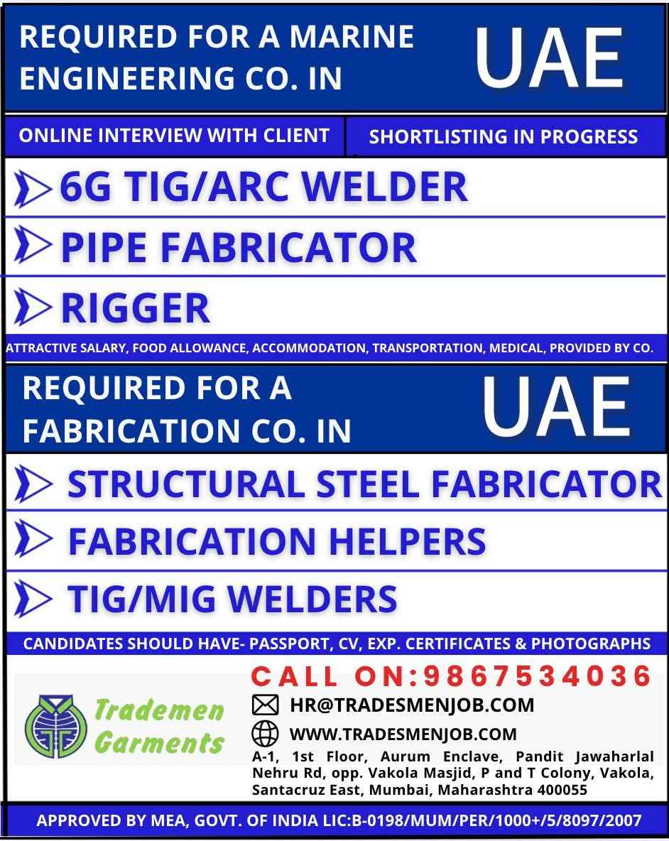 WE ARE HIRING FOR LEADING MARINE FABRICATION FOR OFFSHORE CONSTRUCTION GROUP IN UAE