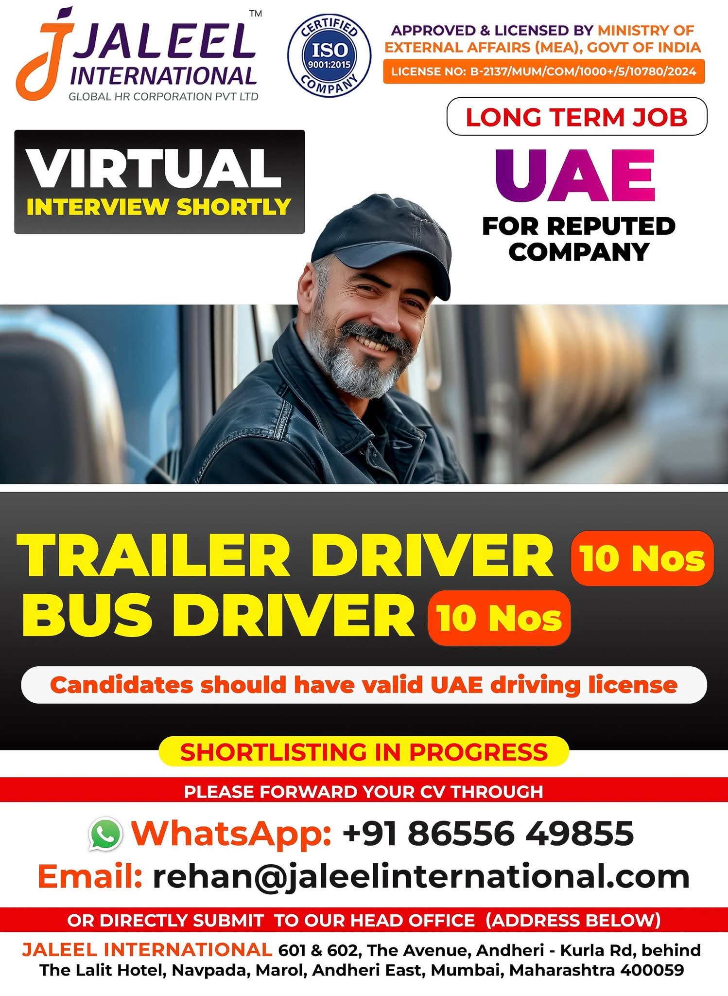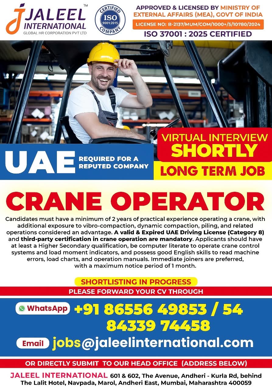Urgent Hiring for Al Faris Group (The Major Heavy Lifting, Heavy Transport and Energy Solutions Provider) UAE