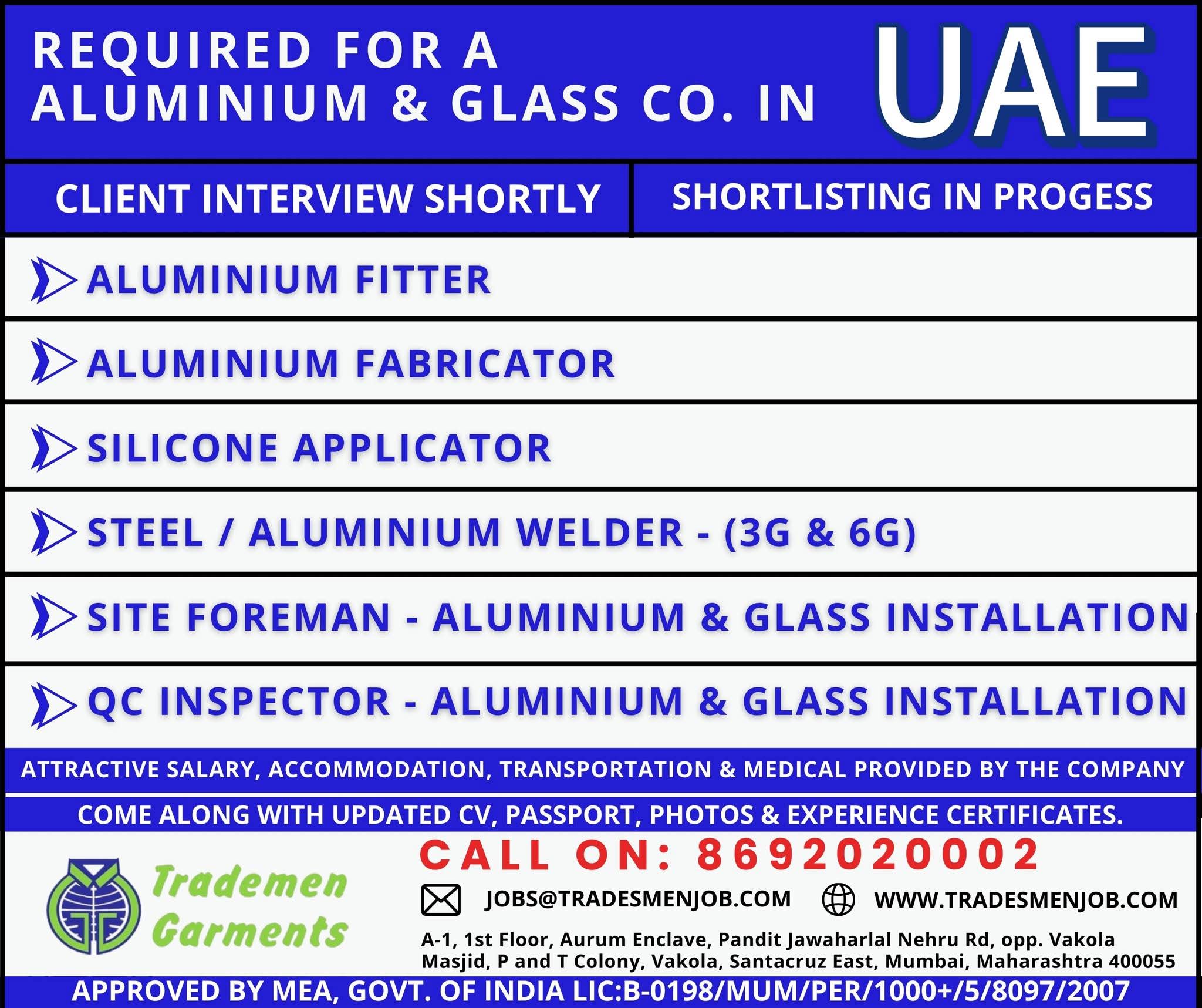 URGENTLY REQUIRED FOR A LEADING ALUMINUM AND GLASS COMPANY IN UAE