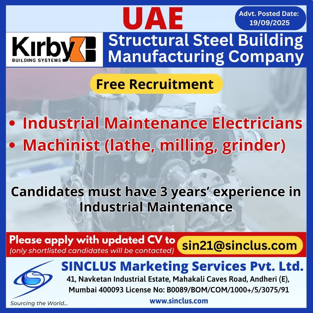 REQUIRED FOR AN ELECTROMECHANICAL CO. IN UAE