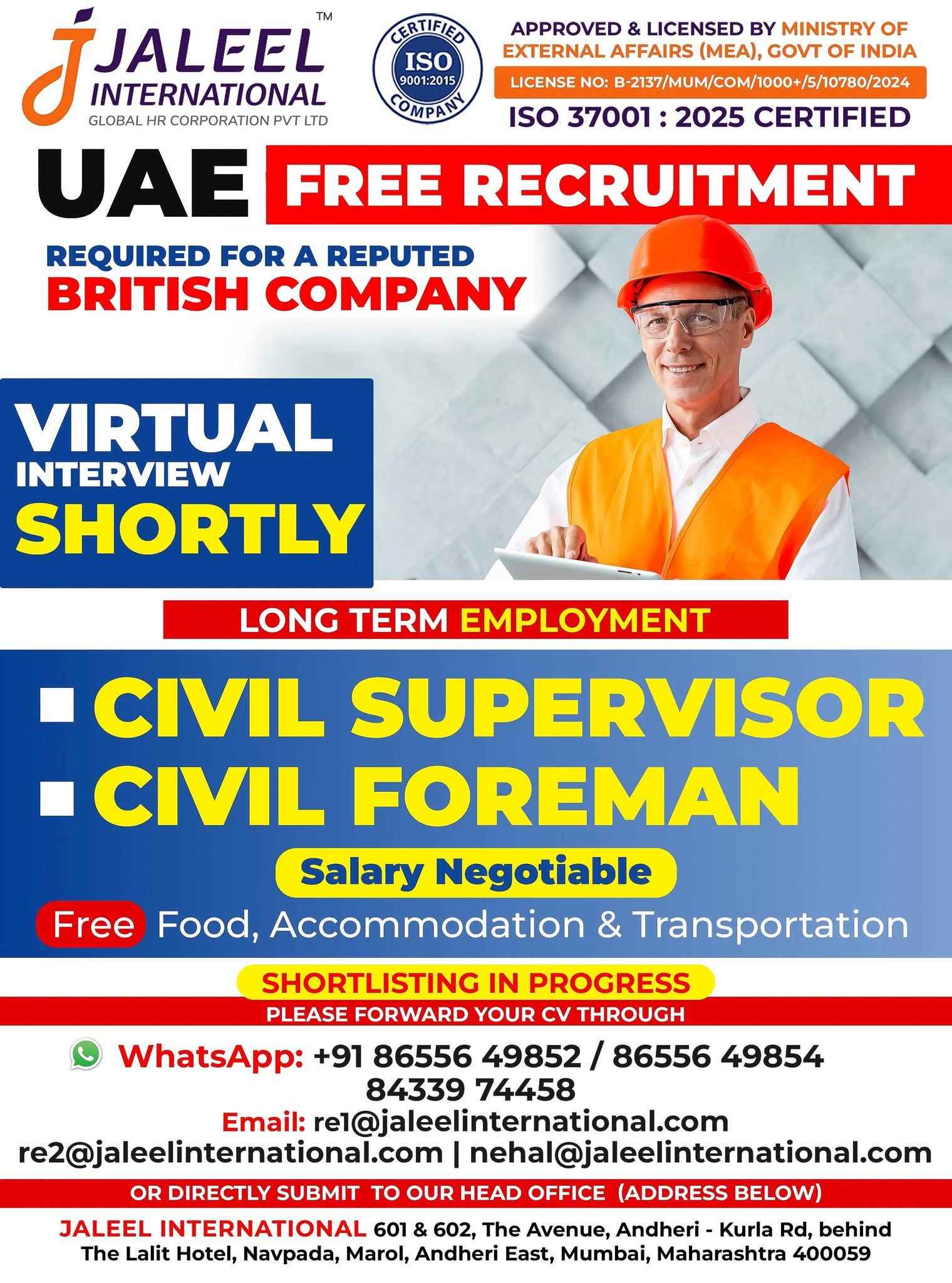 URGENTLY REQUIRE FOR A REPUTED CIVIL CONSTRUCTION COMPANY UAE