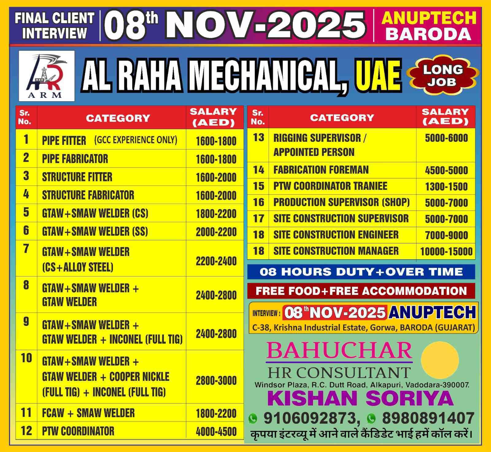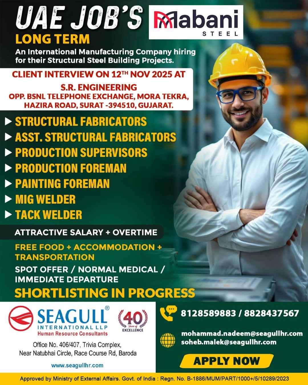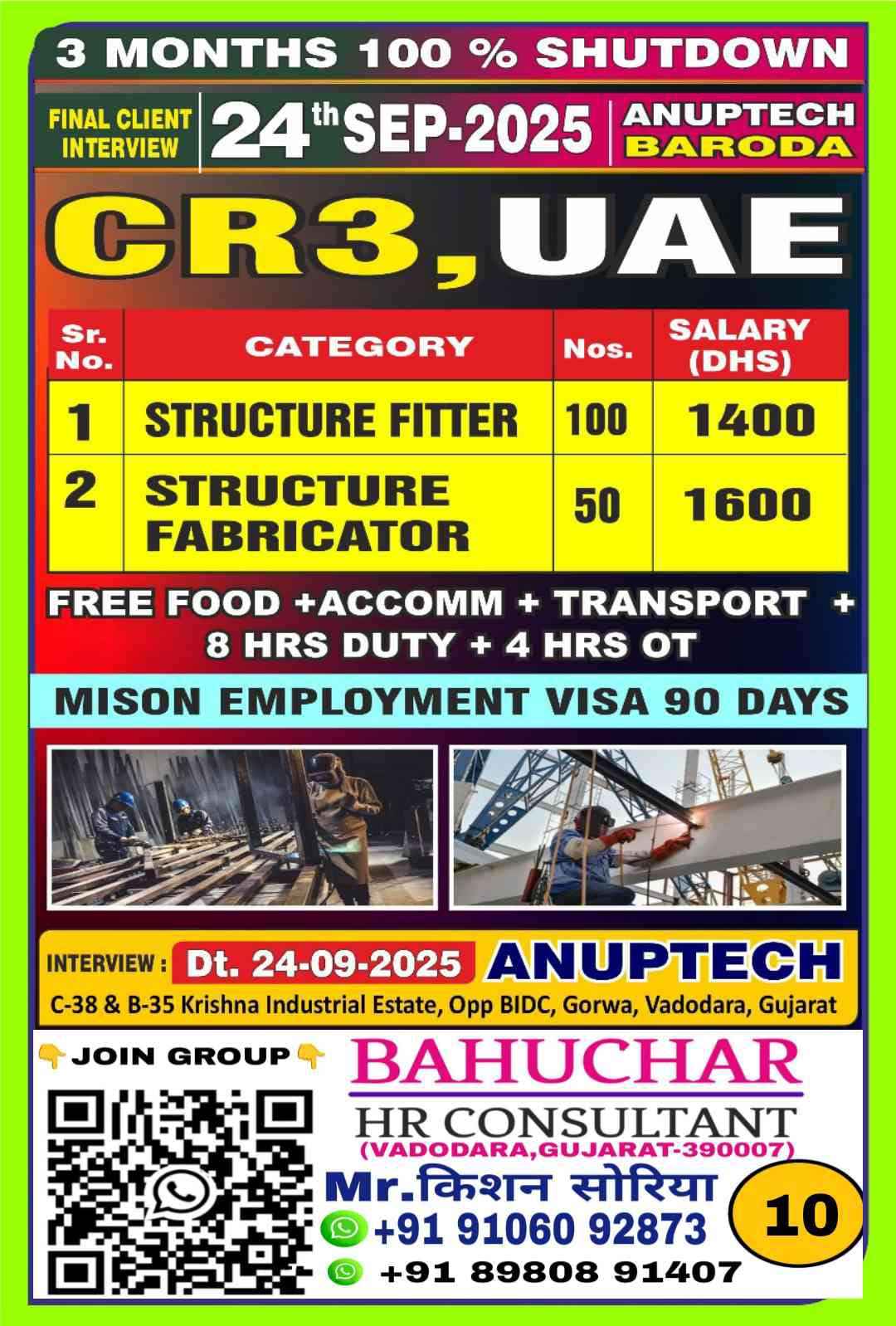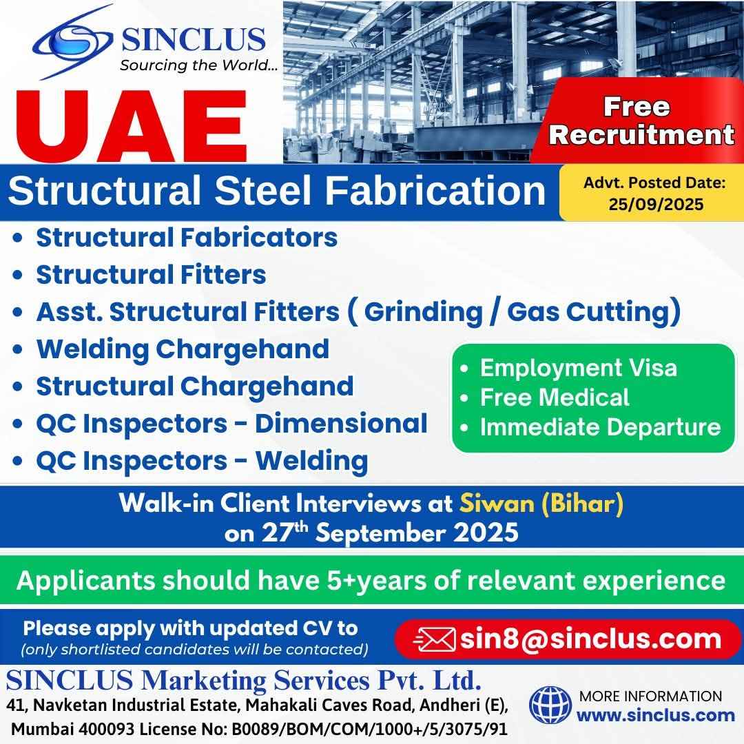 Interview 25th July JOB'S A leading steel fabrication workshop UAE