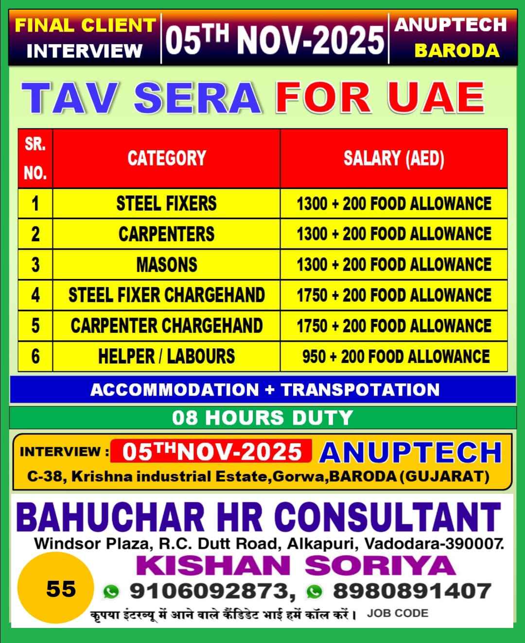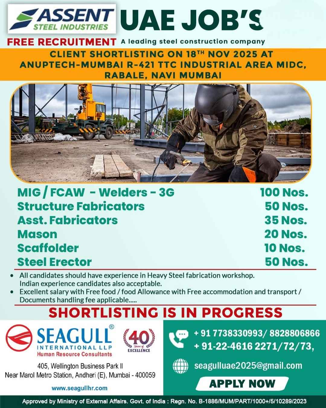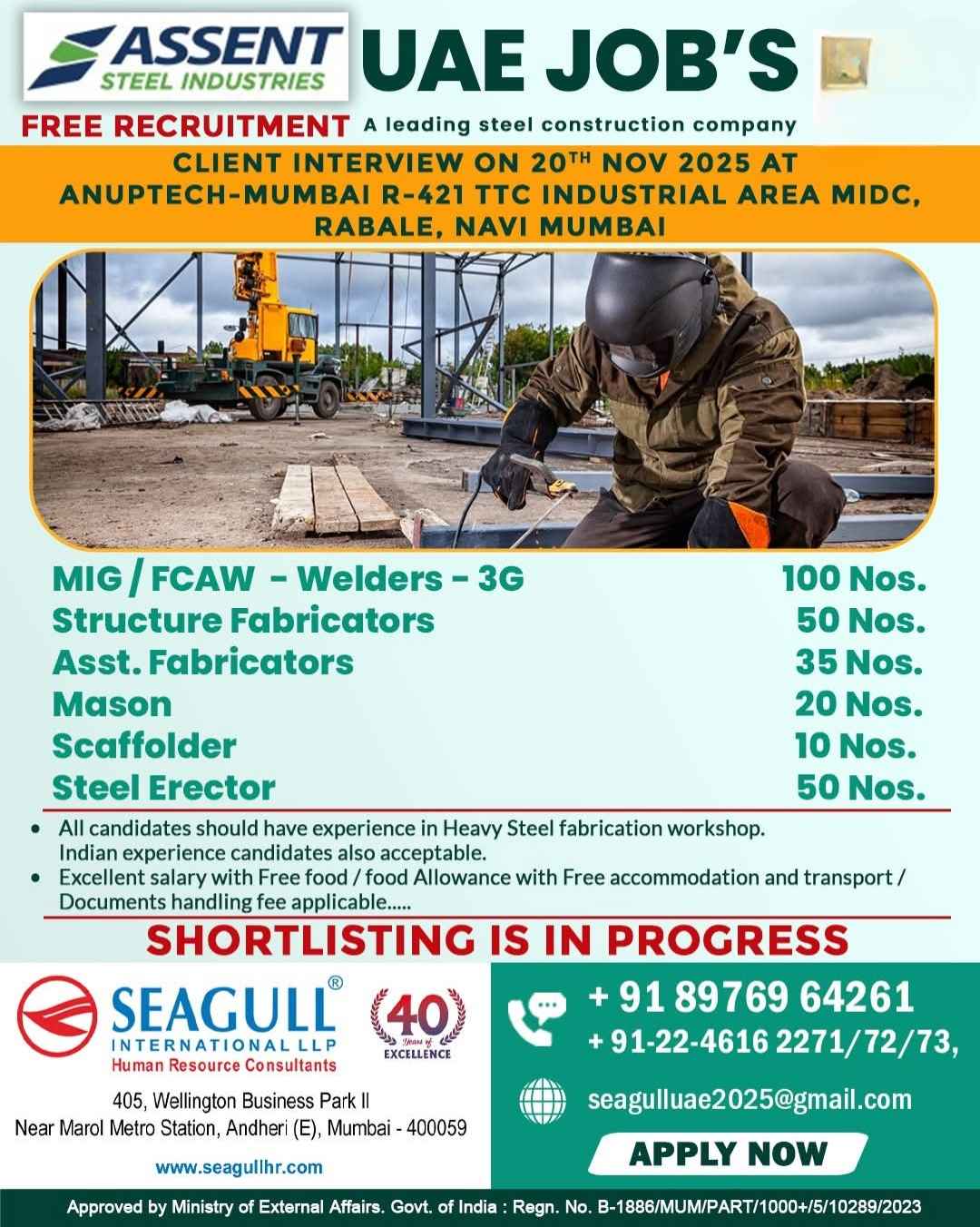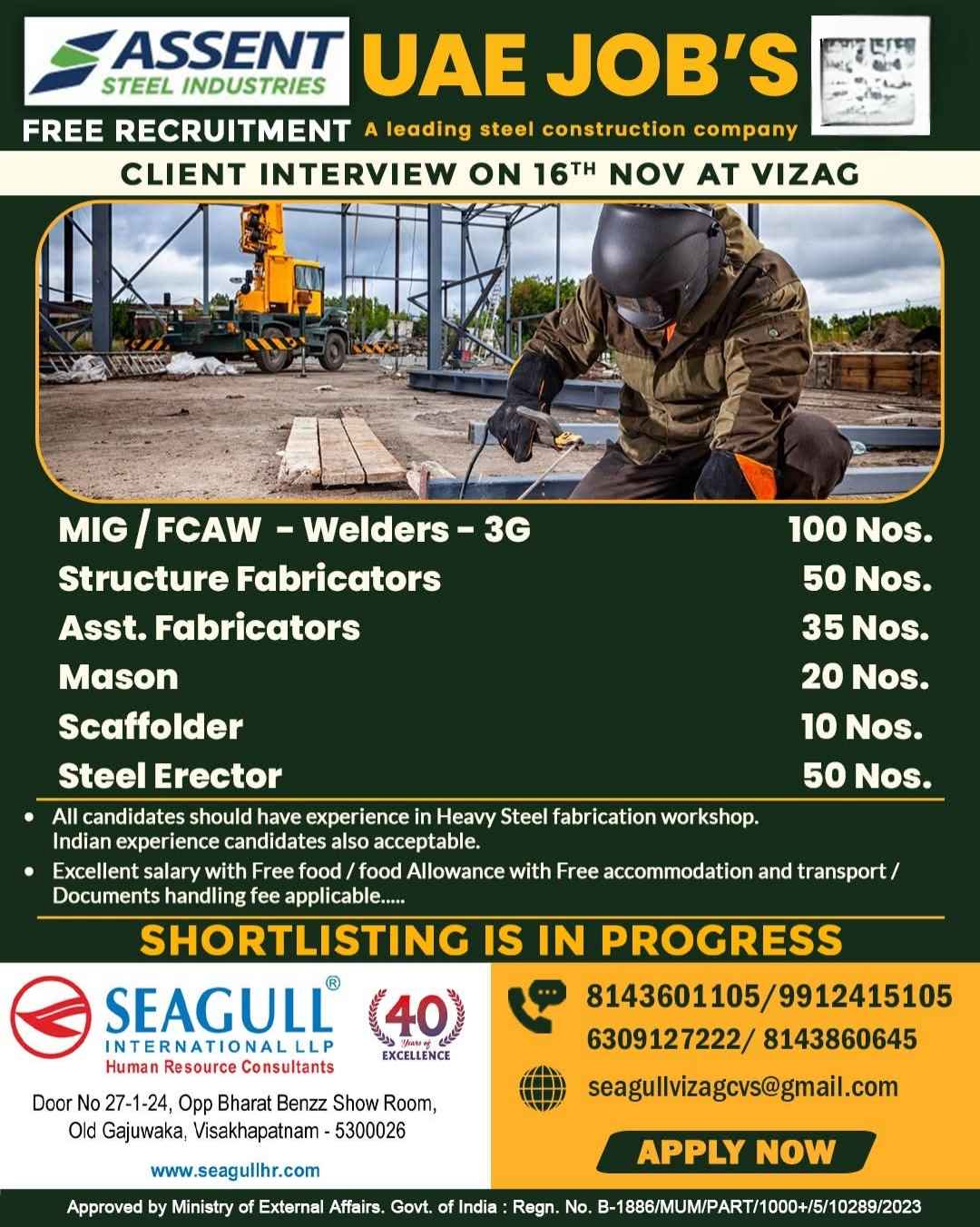 Interview 25th July JOB'S A leading steel fabrication workshop UAE