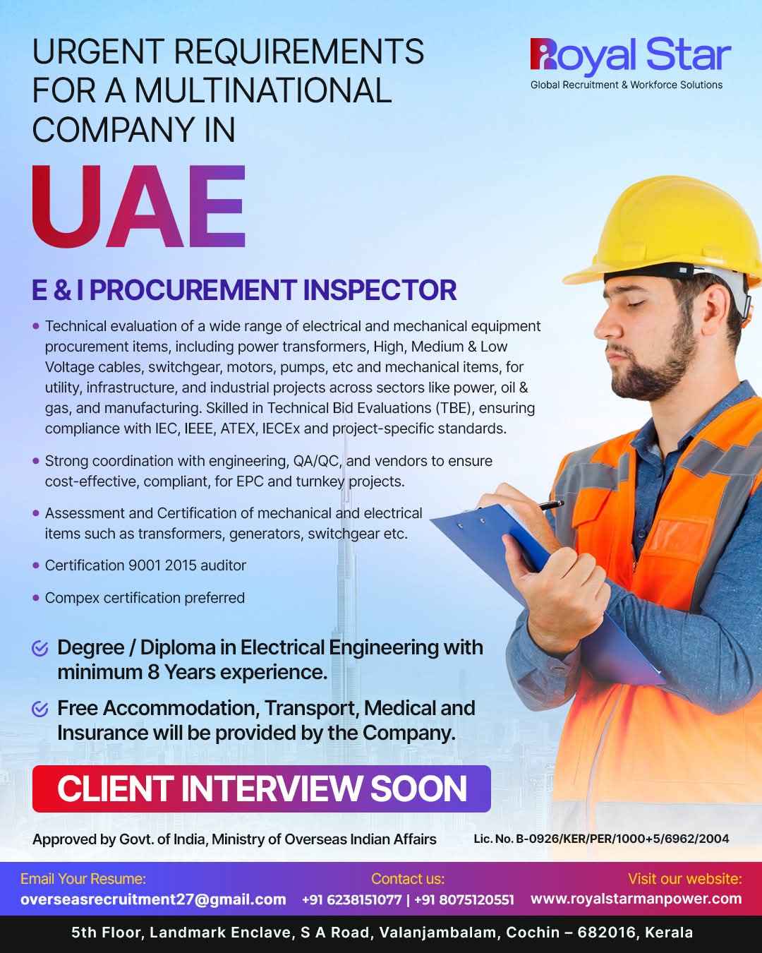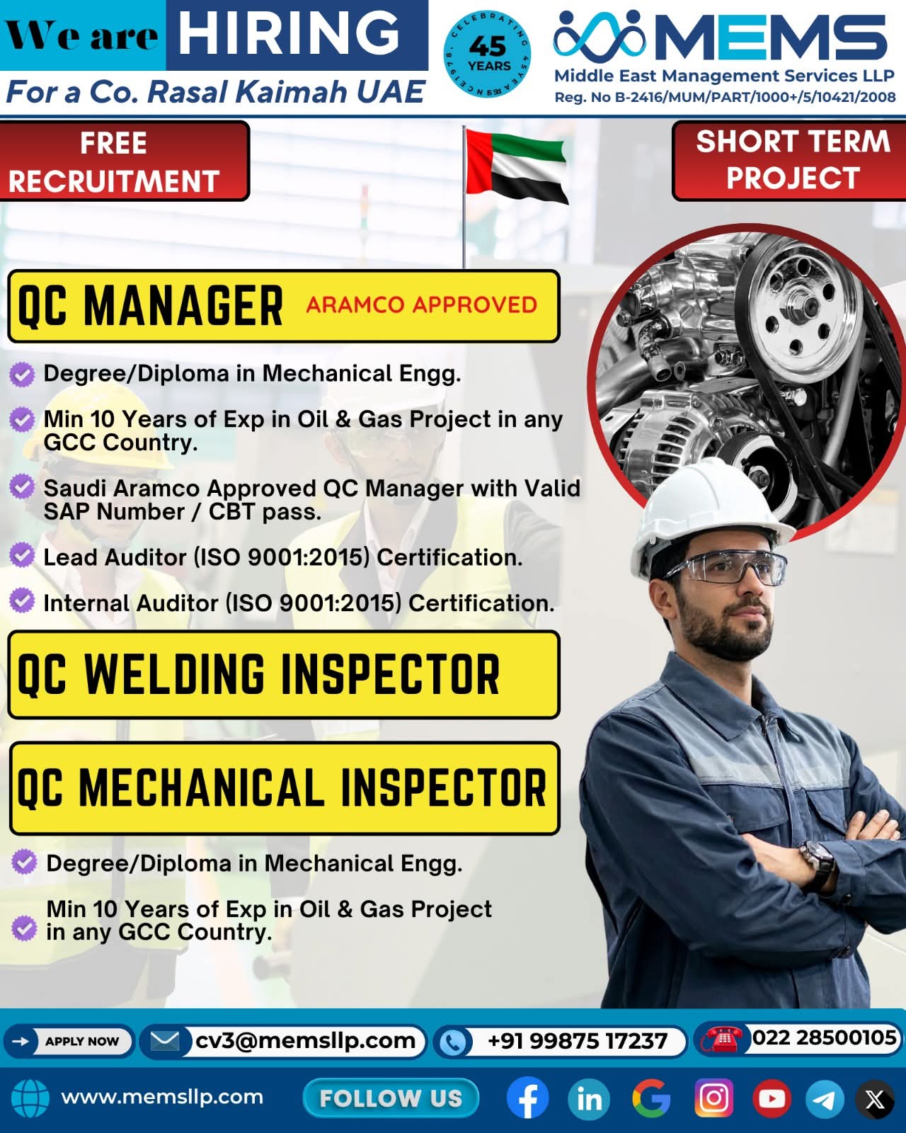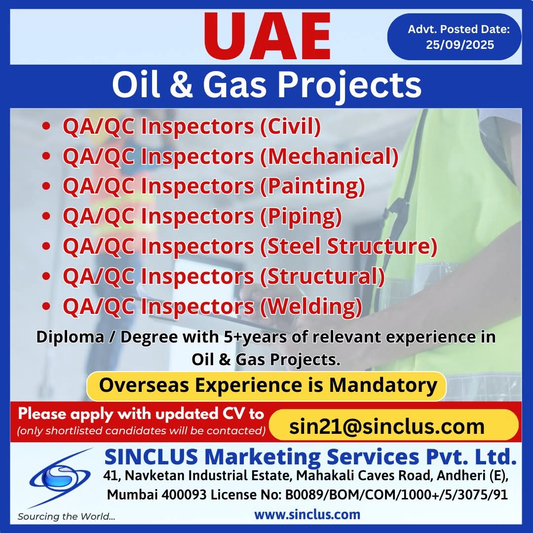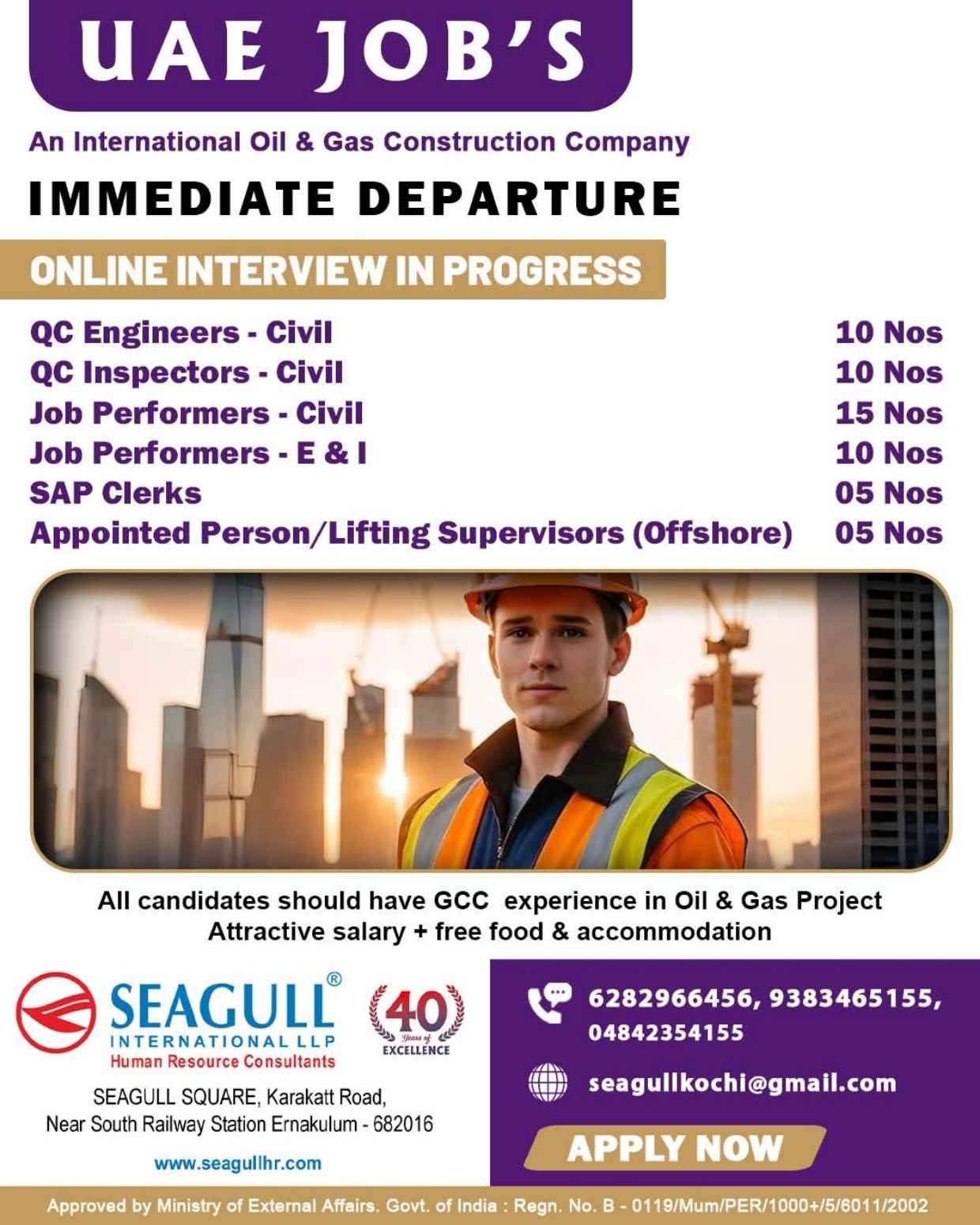 URGENTLY REQUIRED FOR A LEADING OIL & GAS COMPANY FOR THEIR SHUTDOWN PROJECT IN UAE