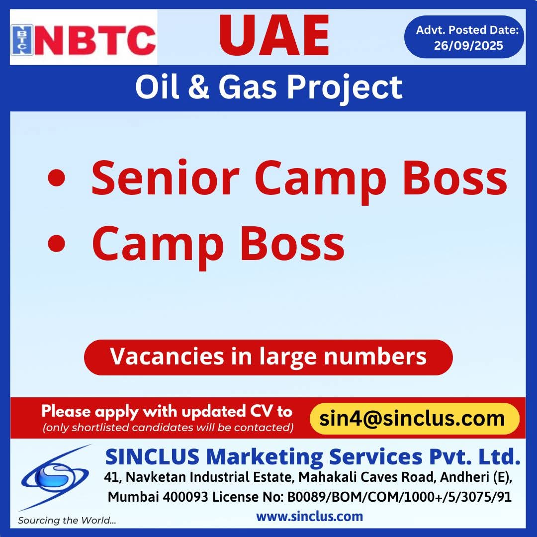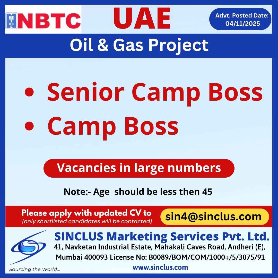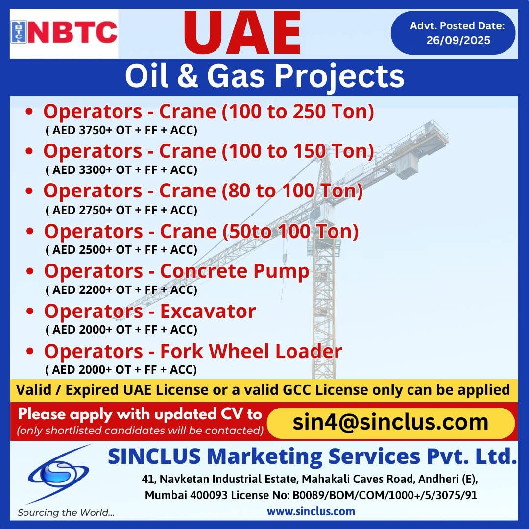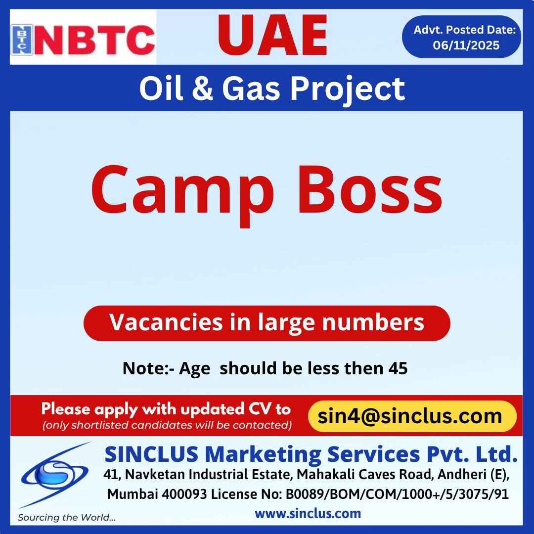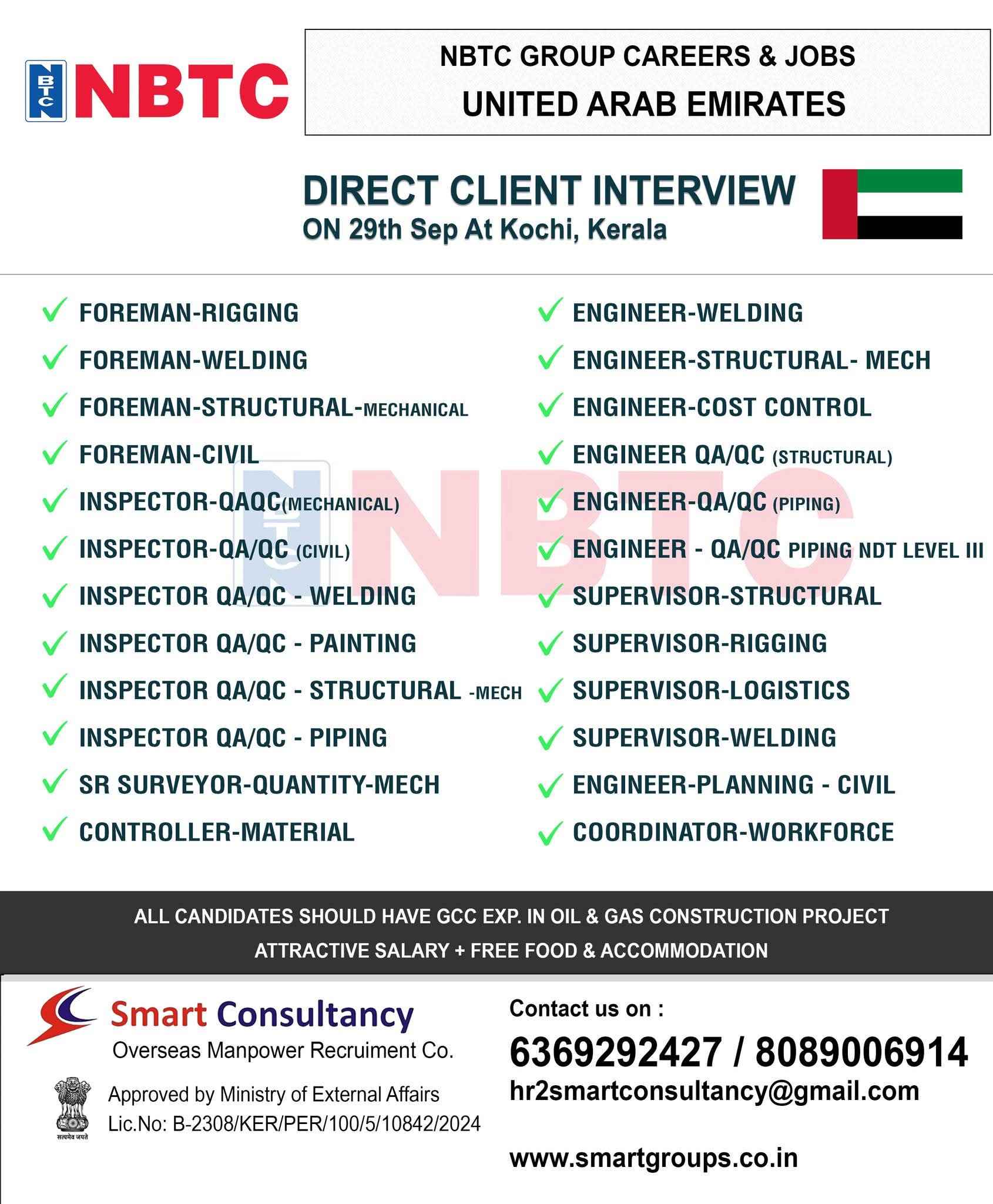 Urgently Required for a Reputable and Well-Regarded Company NBTC - UAE