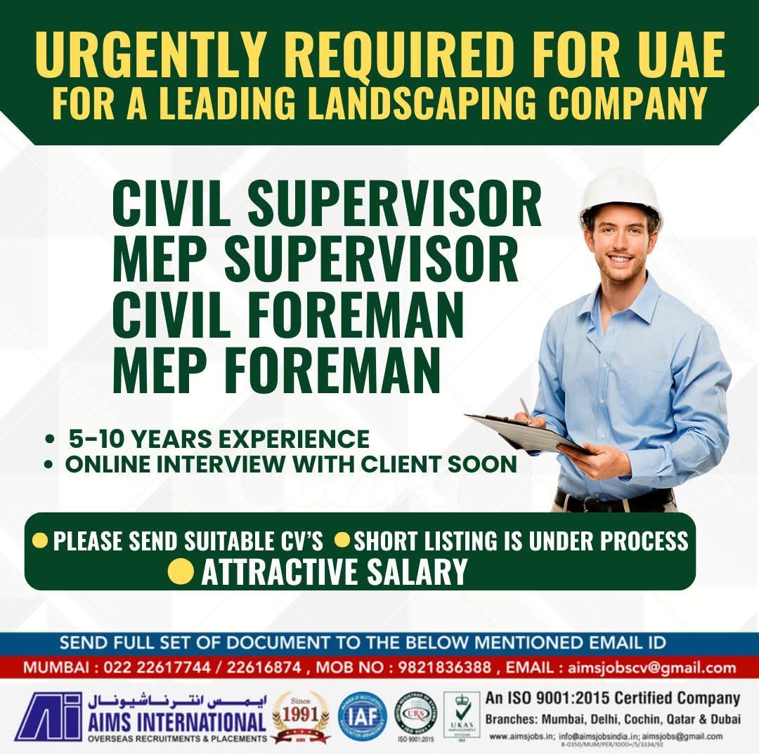 URGENTLY REQUIRED FOR UAE FOR A LEADING LANDSCAPING COMPANY