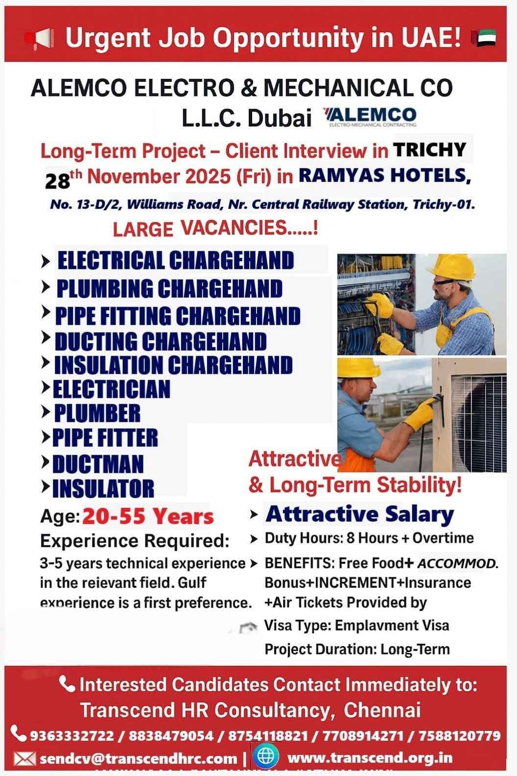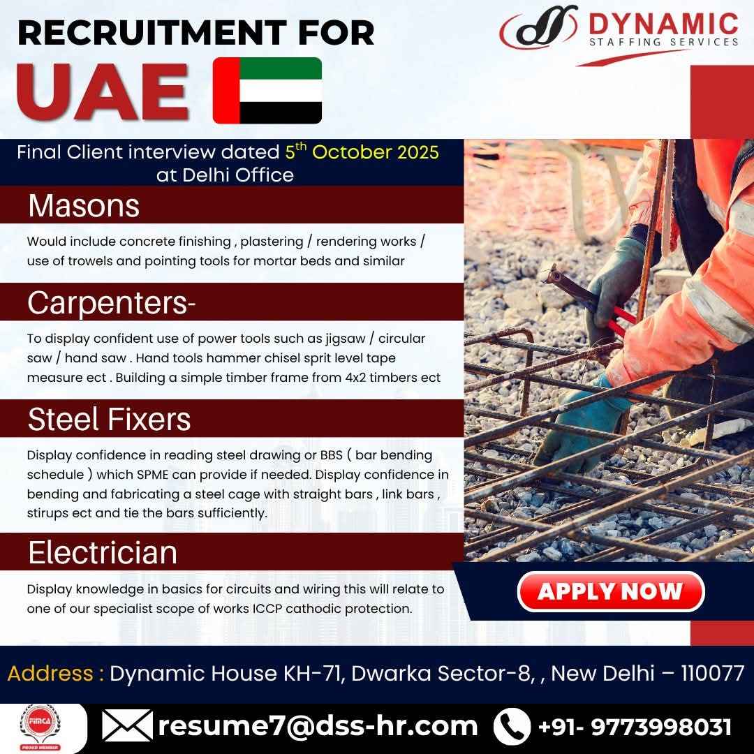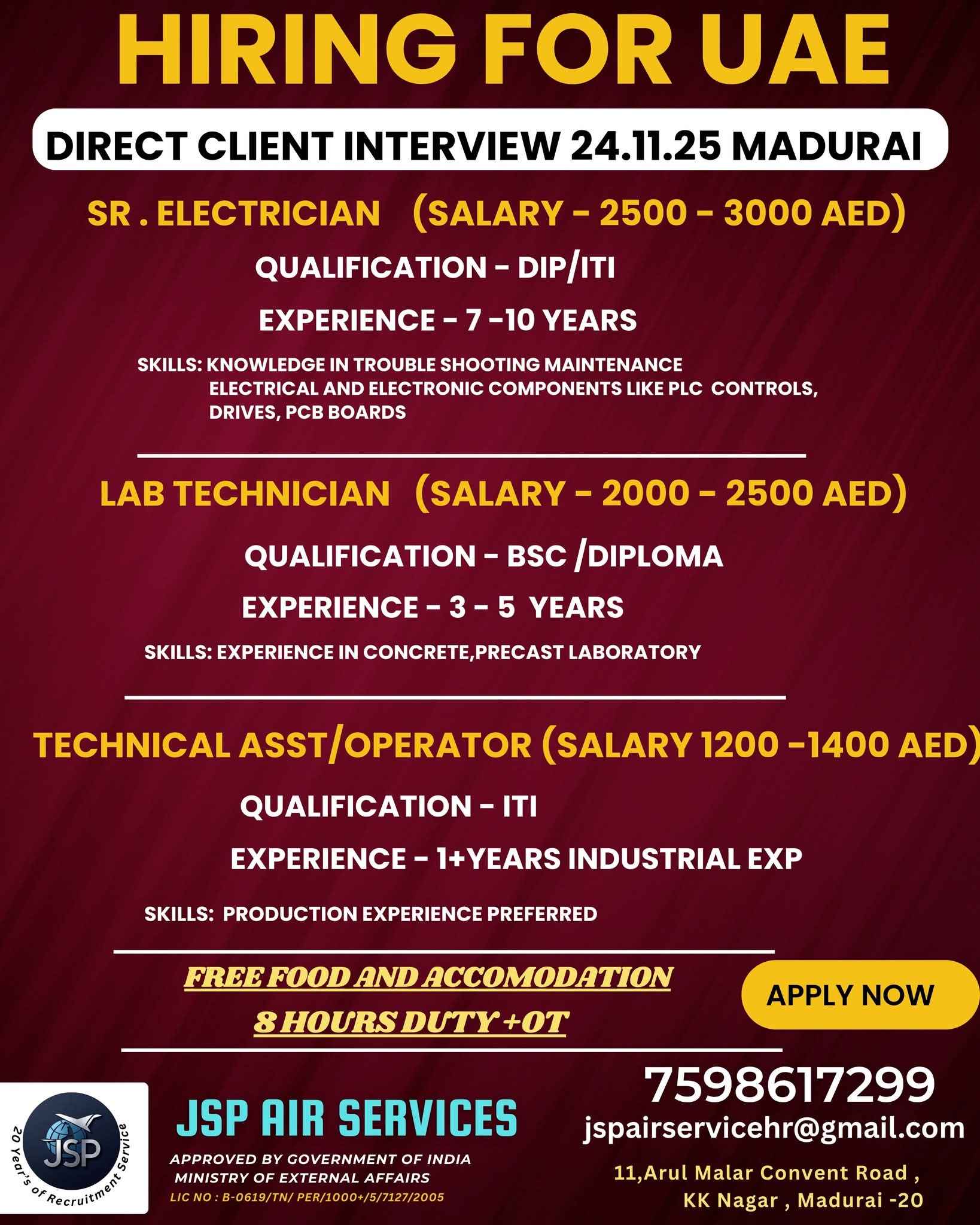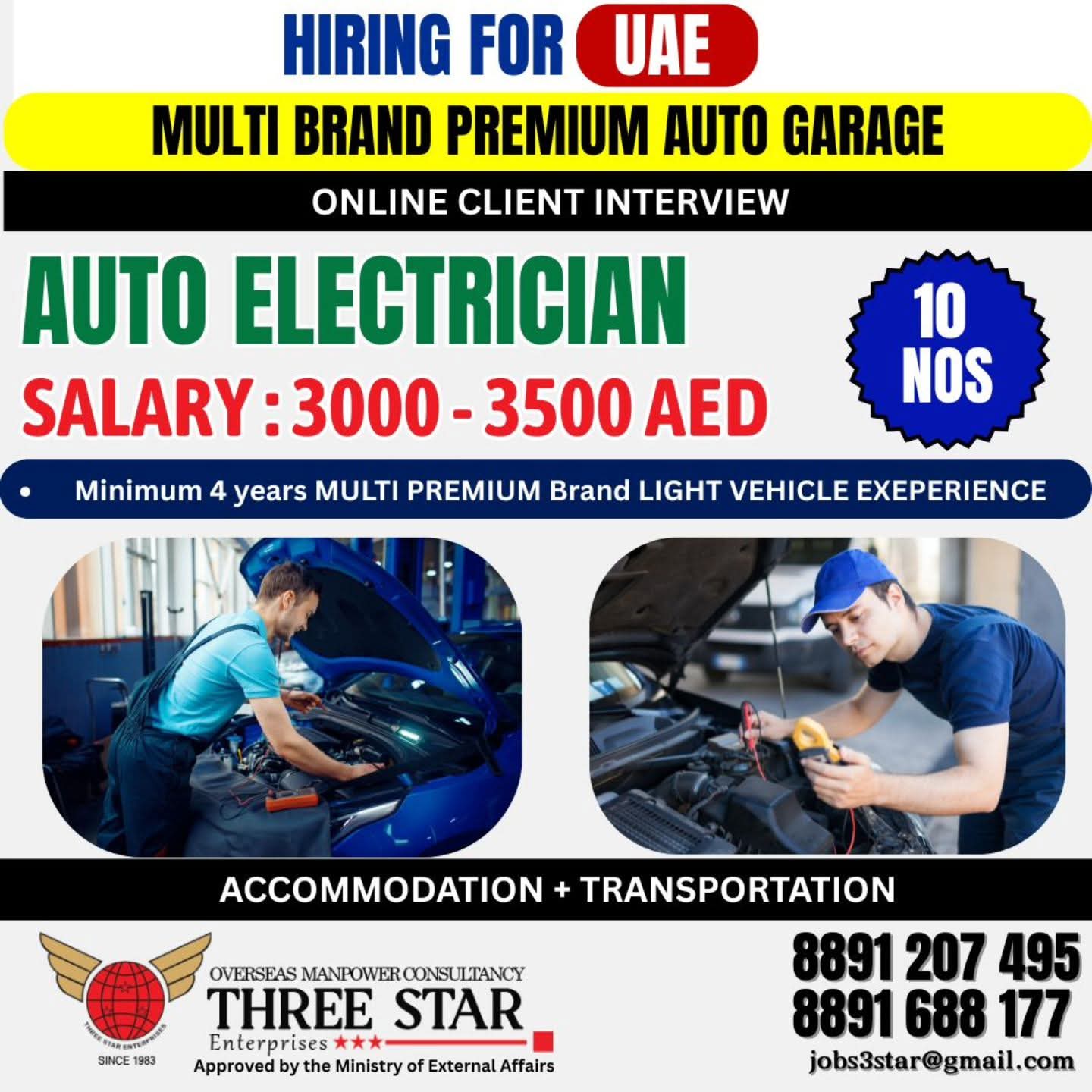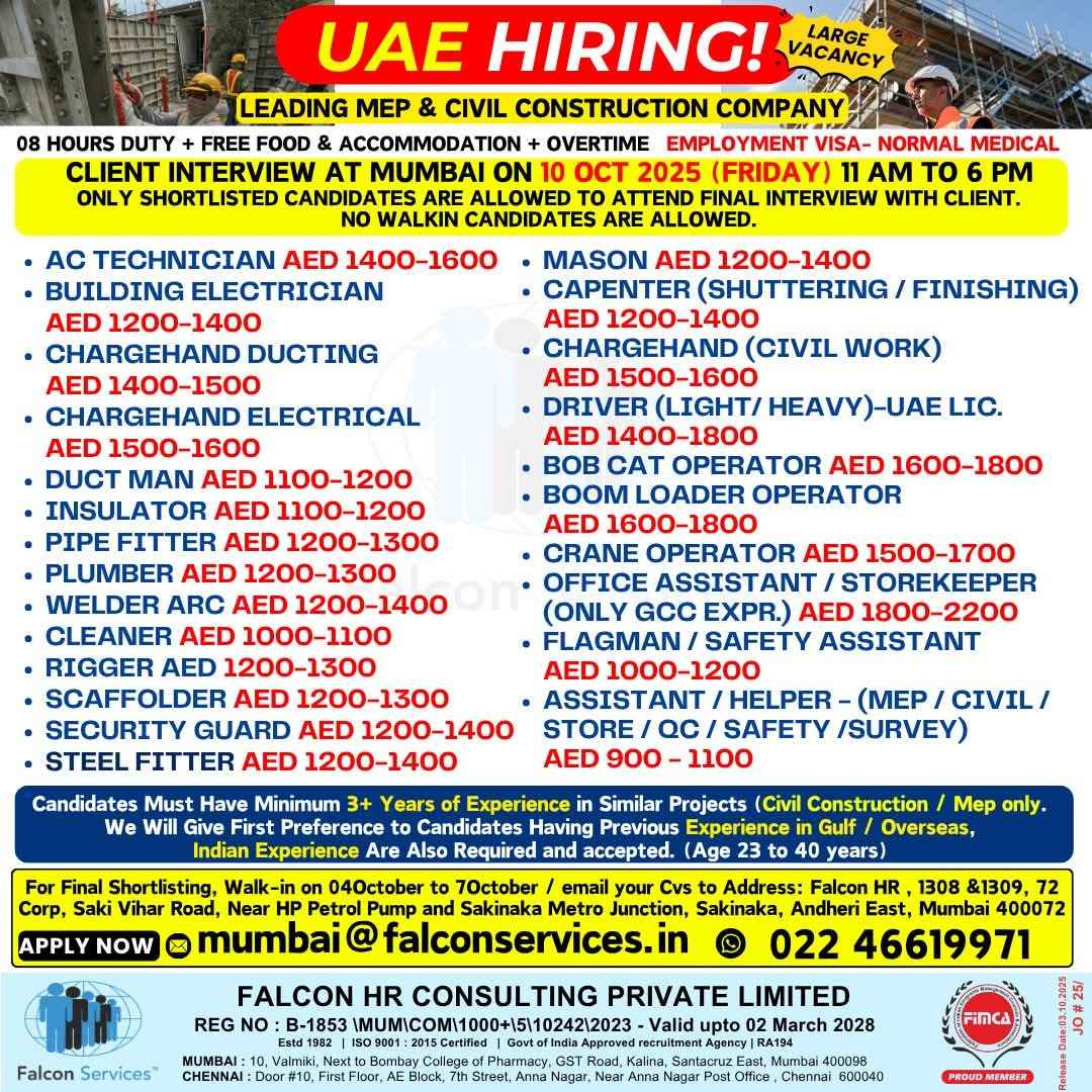 INTERVIEW ON 29TH JULY 2025 URGENT HIRING FOR TECHNICIANS UAE