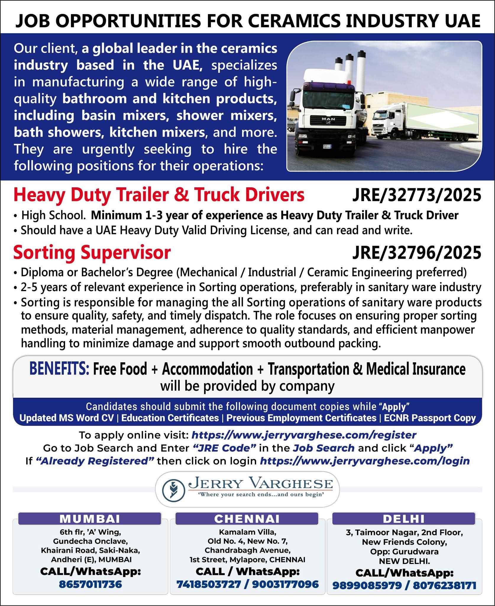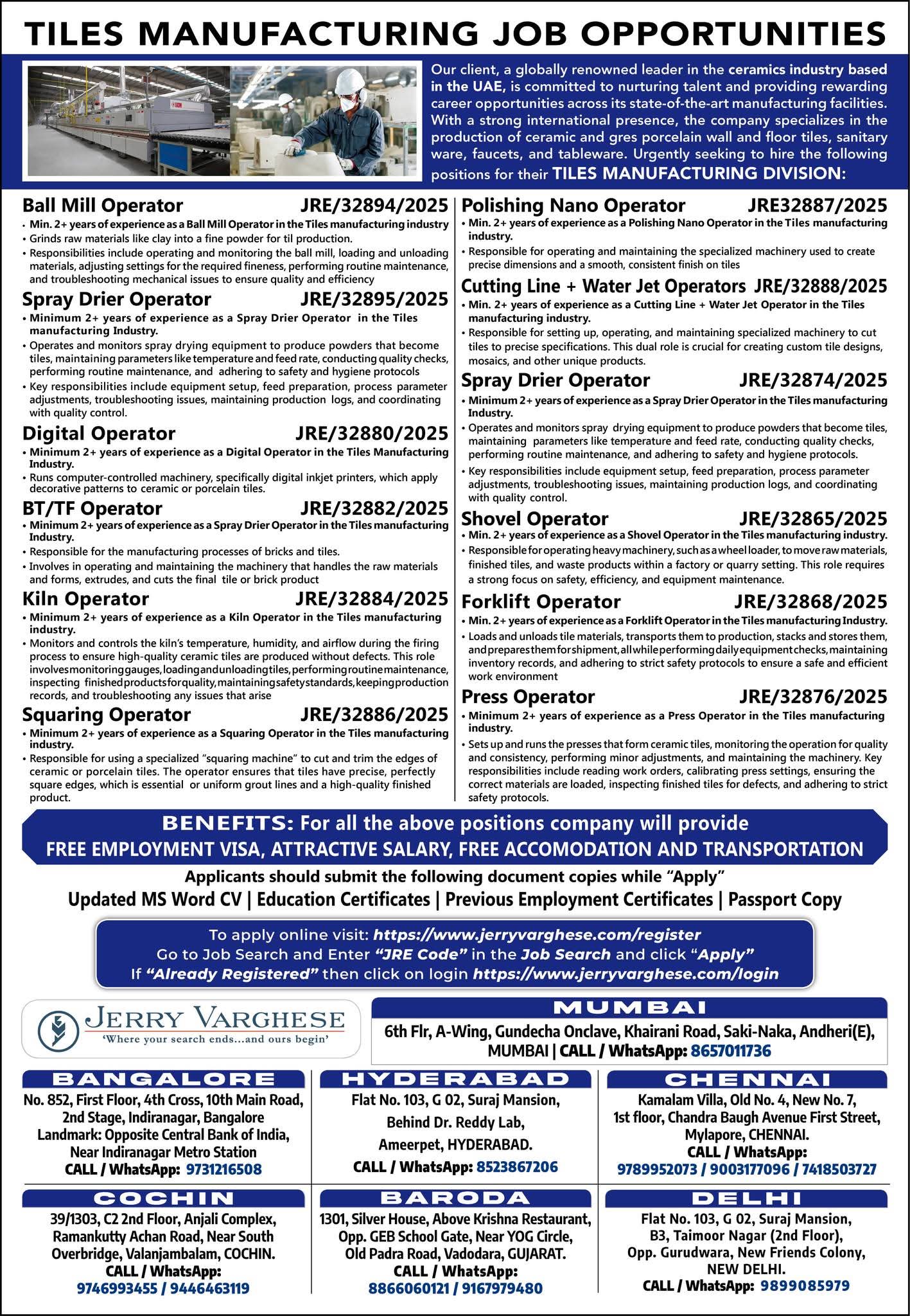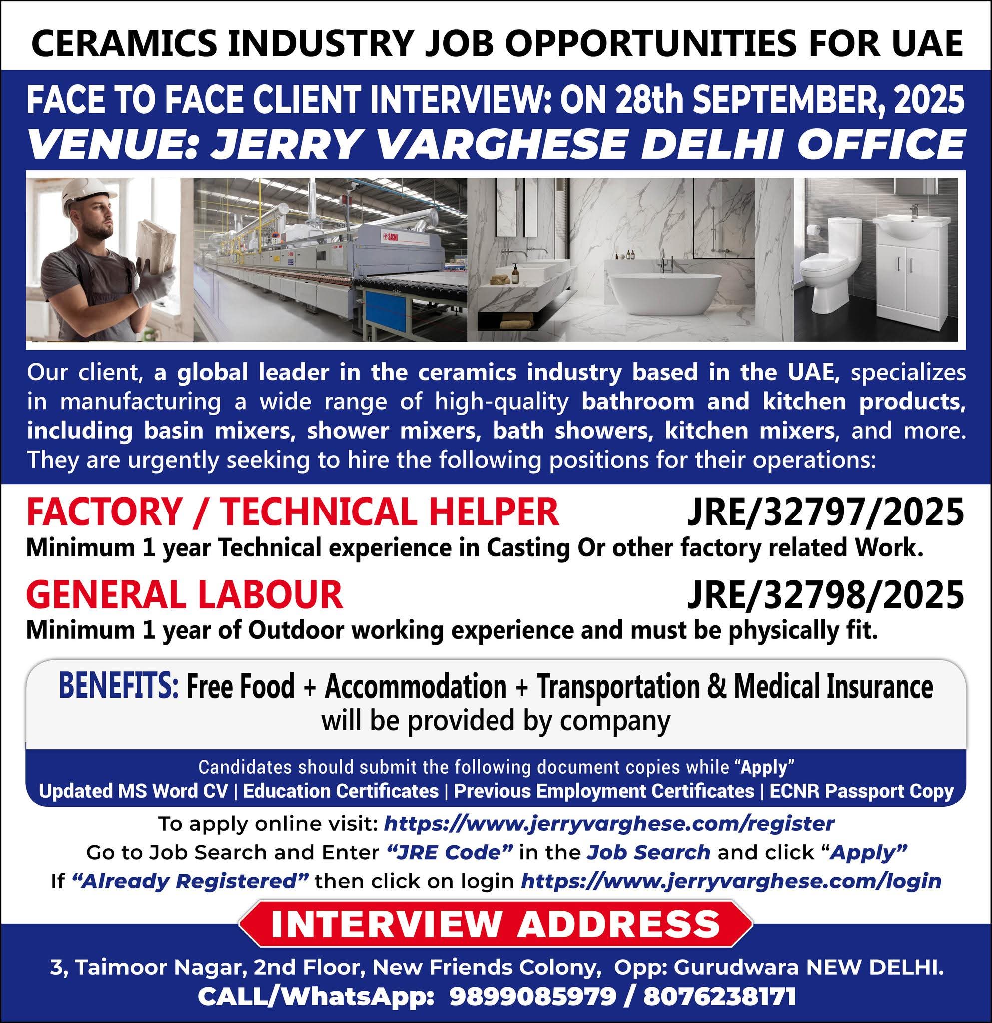 CERAMICS INDUSTRY JOB OPPORTUNITIES FOR UAE