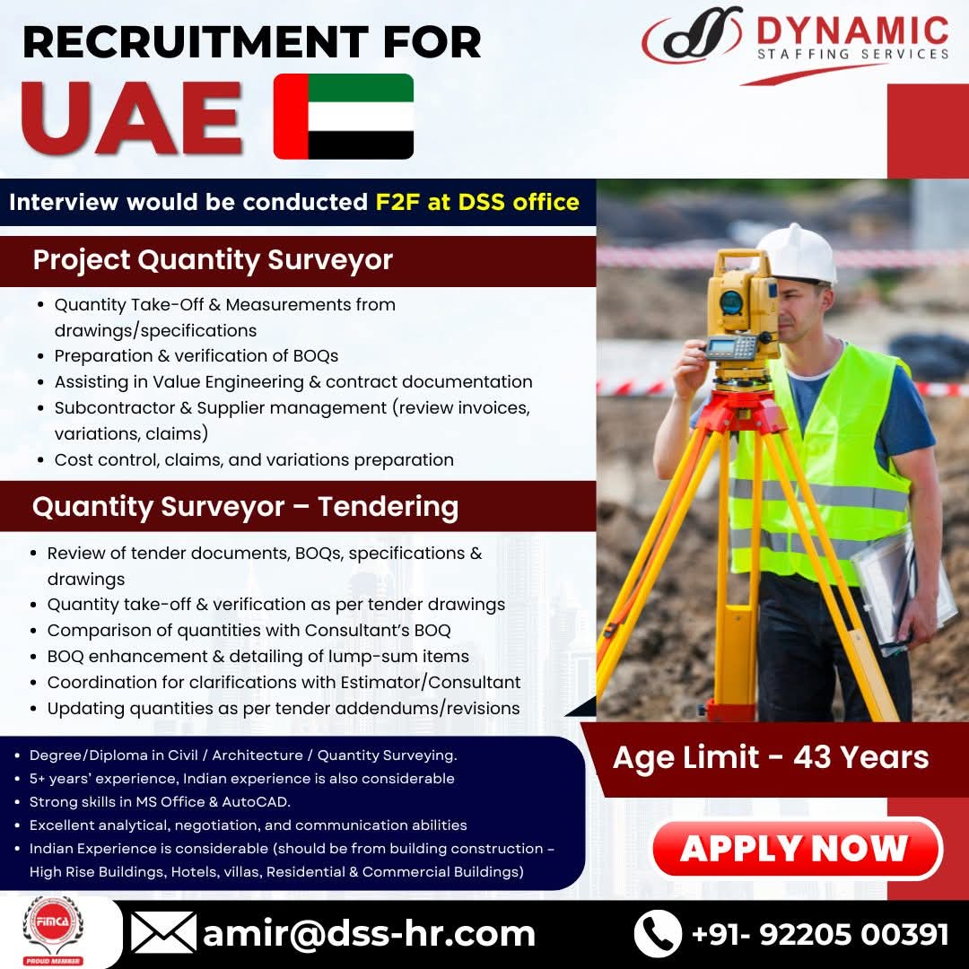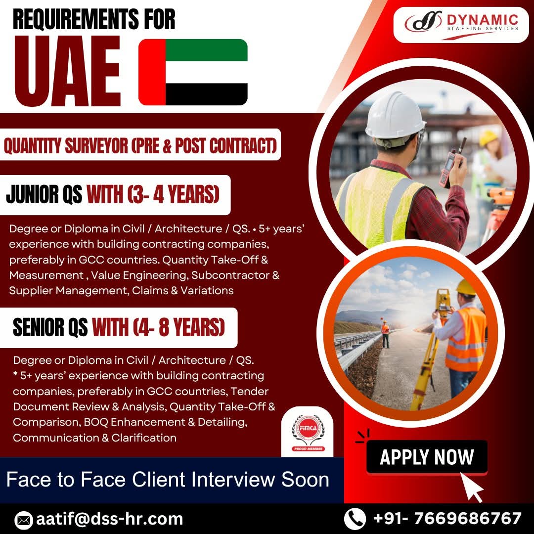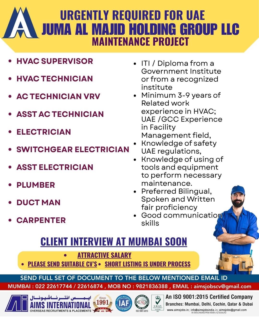 URGENT REQUIREMENT For a Leading Facility Management Company in Dubai, UAE