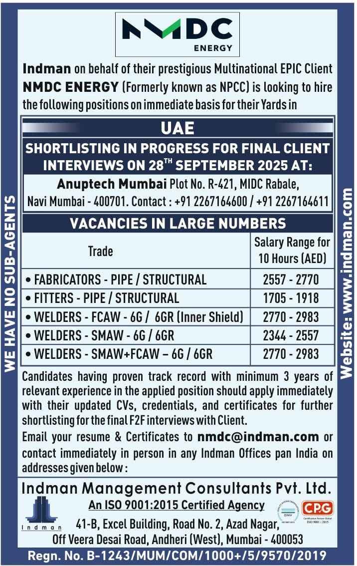 URGENT JOB OPENINGS FOR NMDC ENERGY UAE