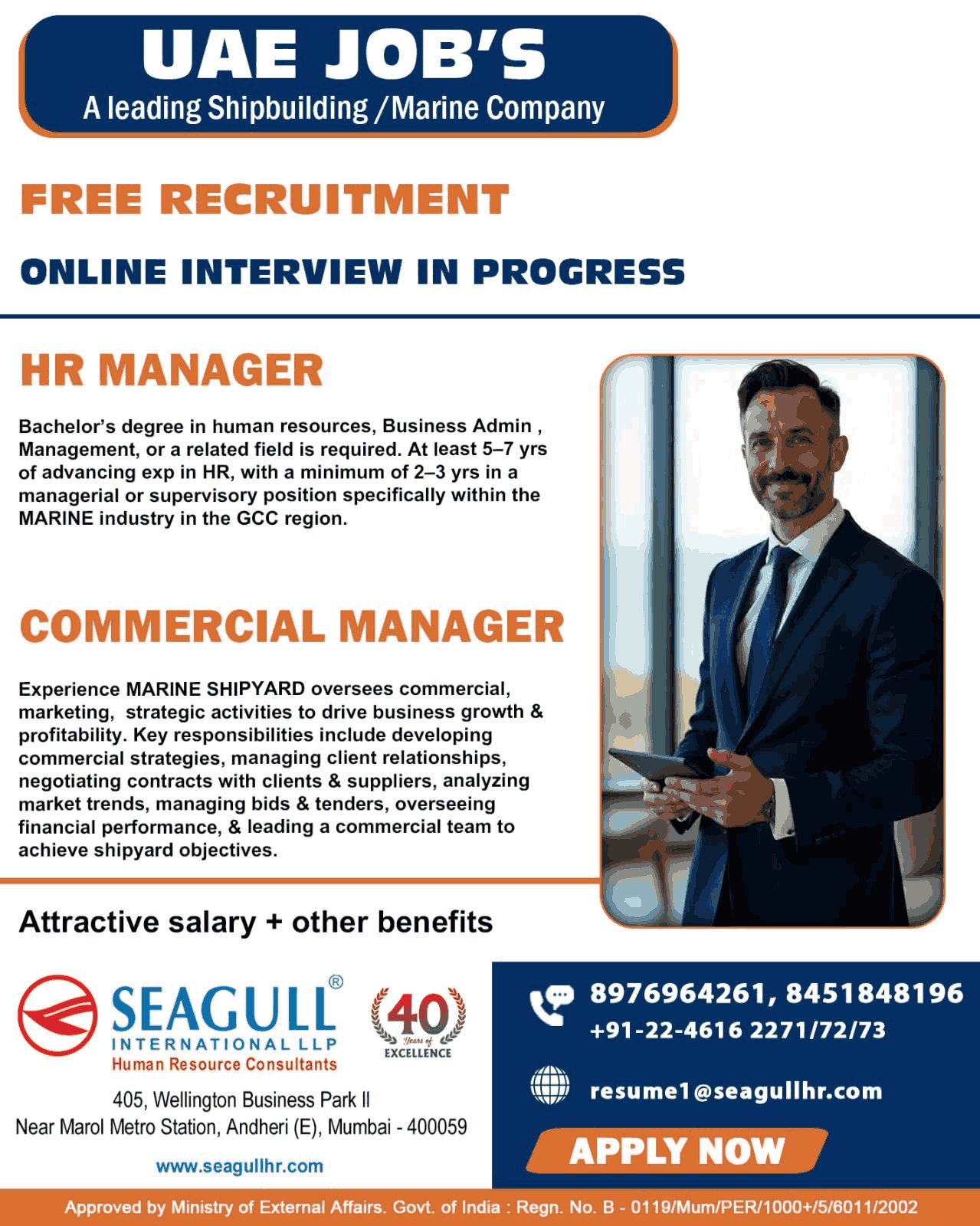 UAE JOB'S A leading Shipbuilding/Marine Company