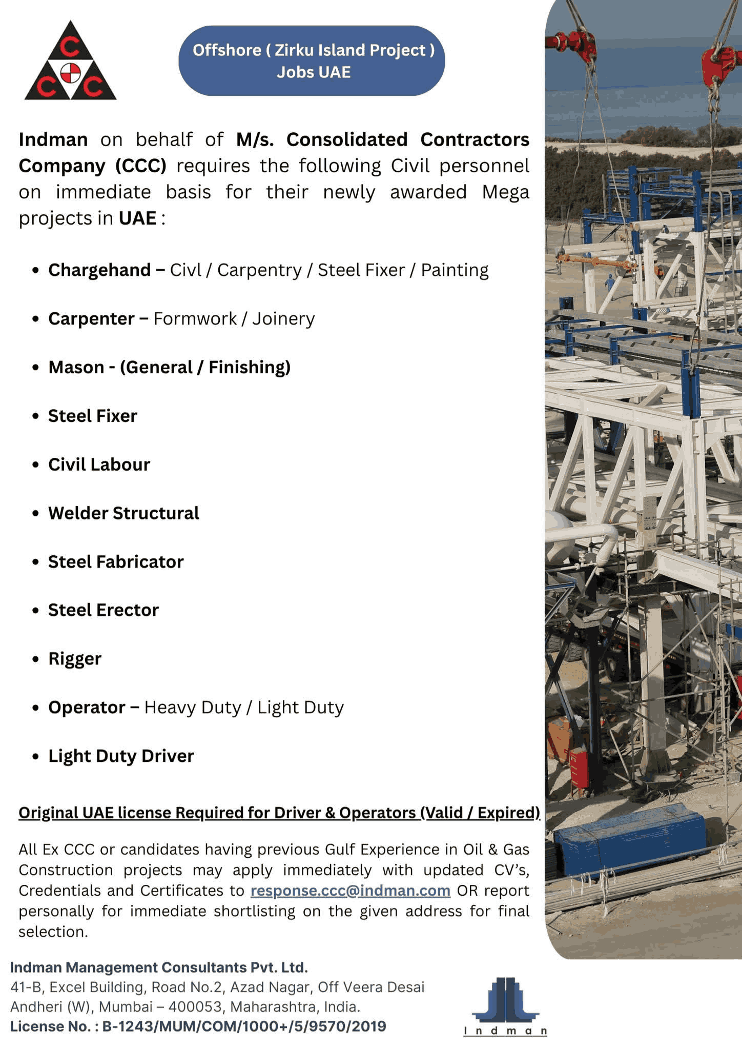 UAE: An International Company Requires For Their Petro-Chemical & Oil & Gas Construction Project