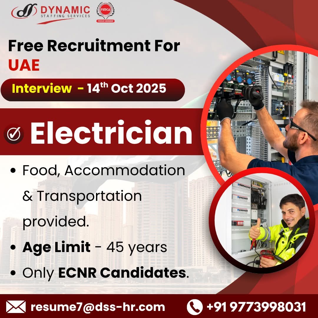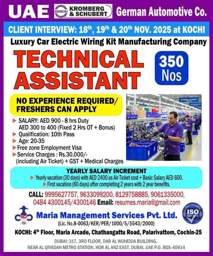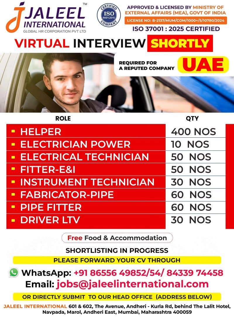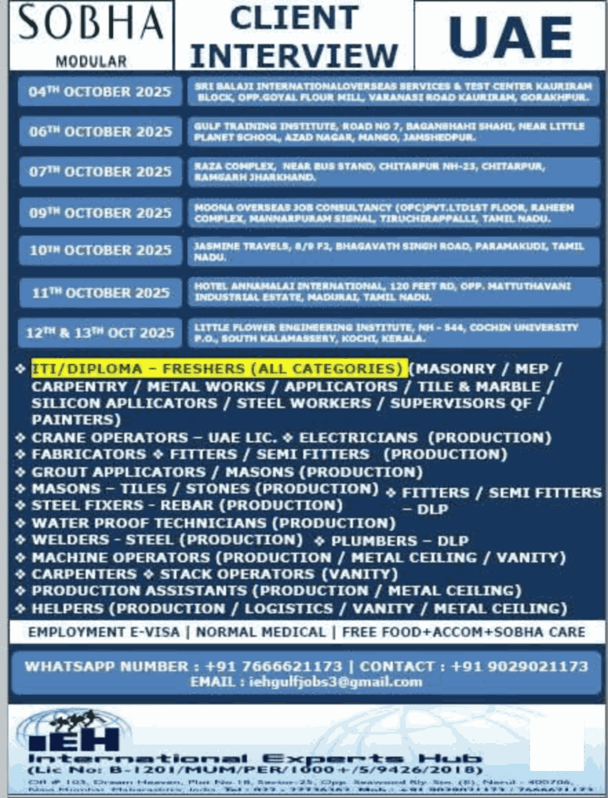 WALK IN INTERVIEW ON 26TH JULY 2025 Fresh ITI candidates in UAE Jobs