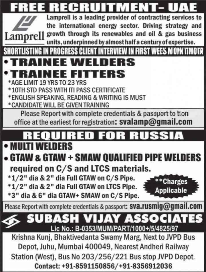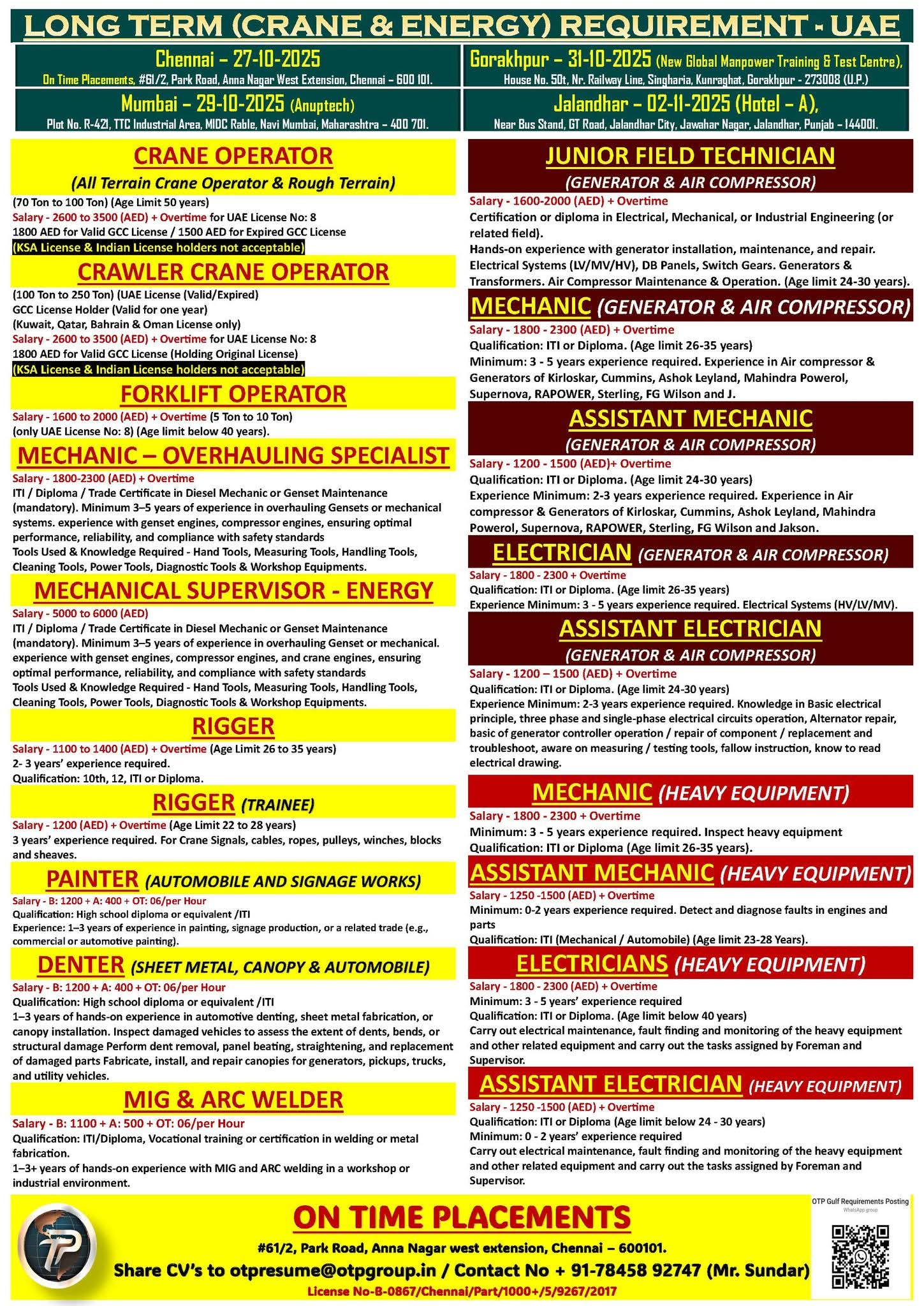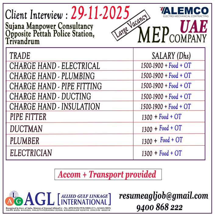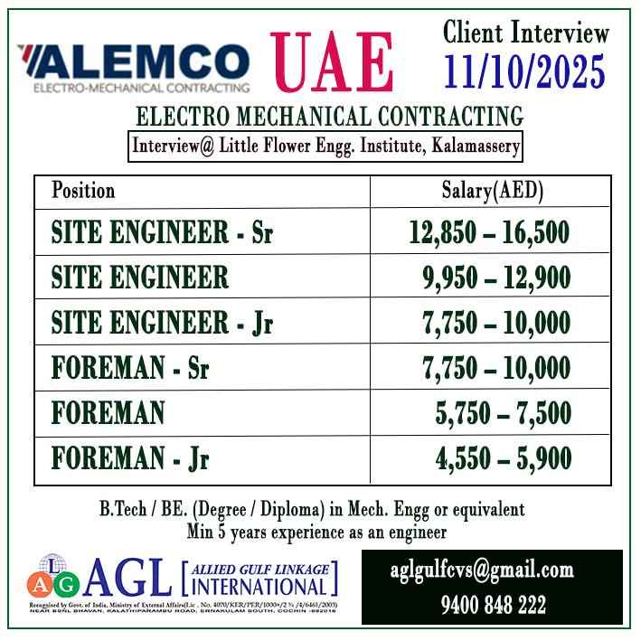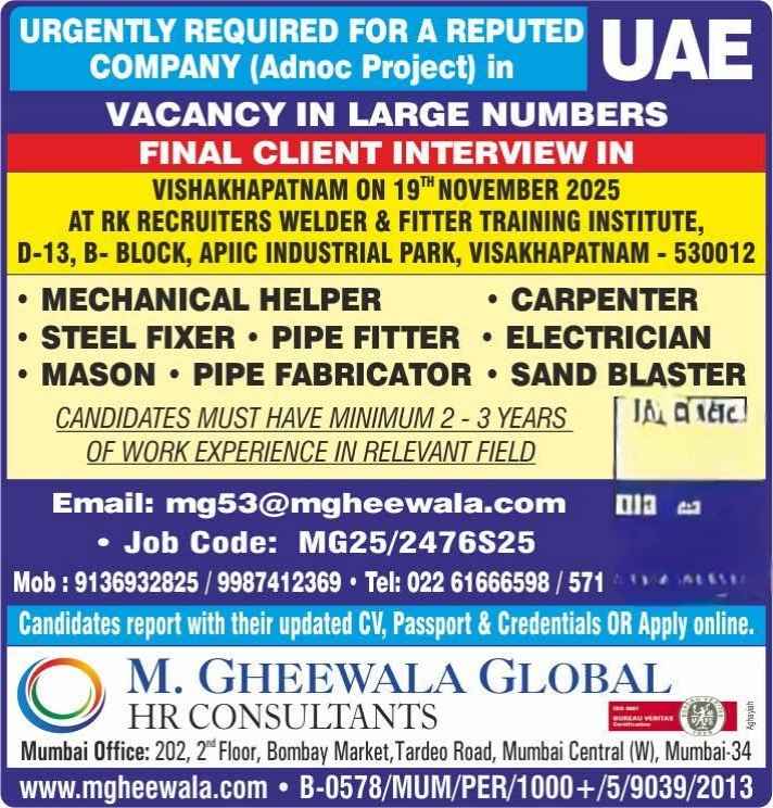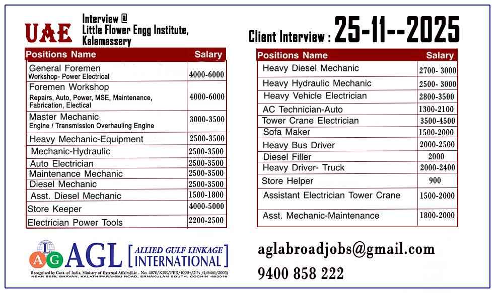 WALK IN INTERVIEW ON 26TH JULY 2025 Fresh ITI candidates in UAE Jobs