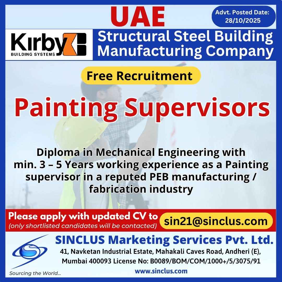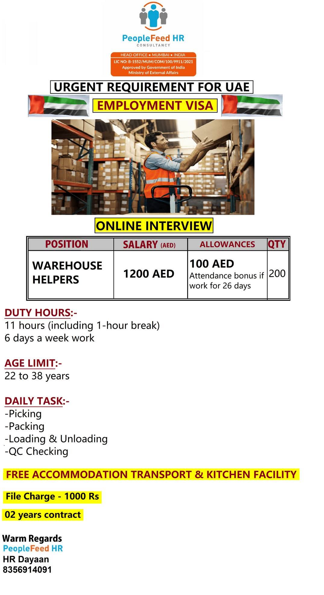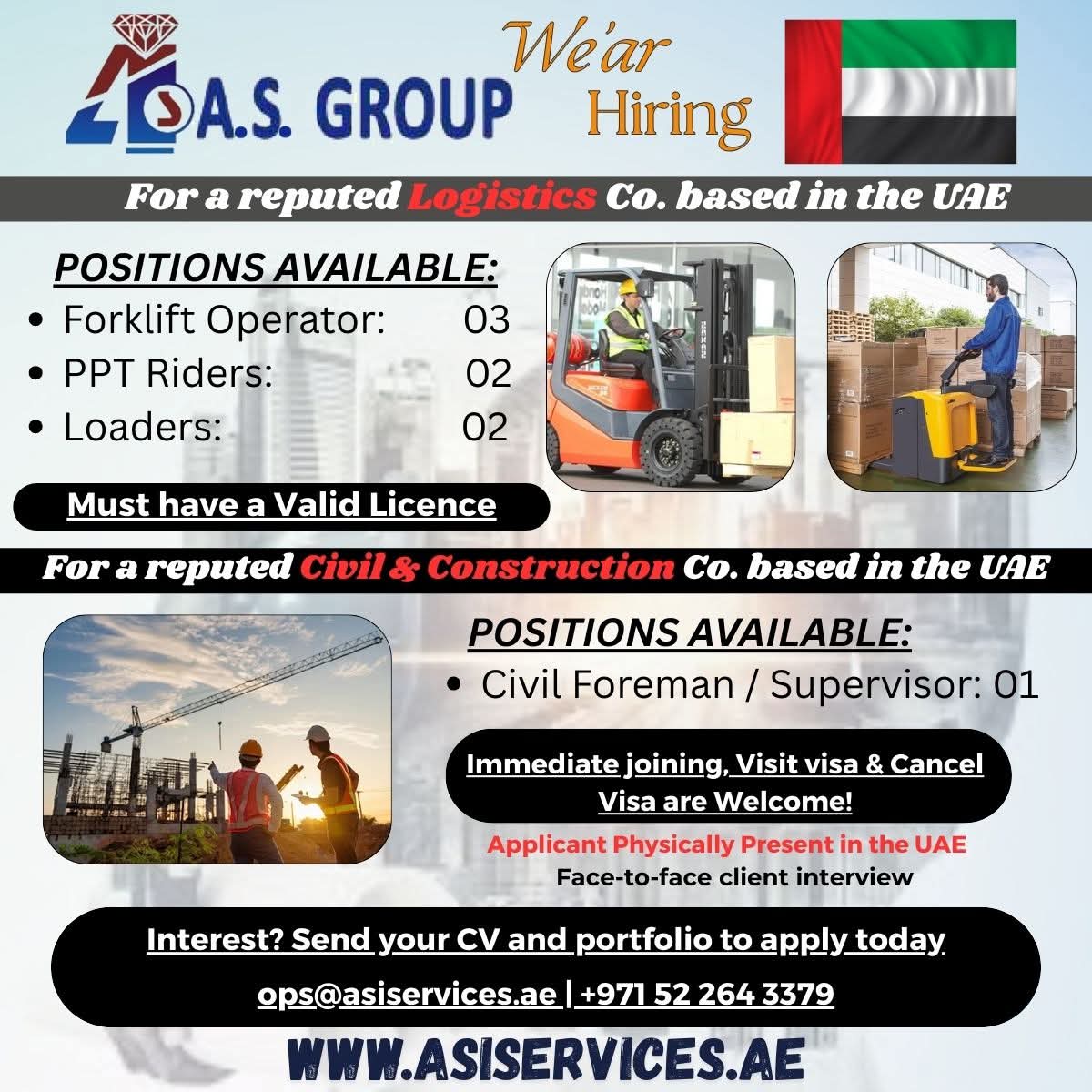 URGENTLY REQUIRED FOR A REPUTED COMPANY FOR THEIR WAREHOUSE PROJECT IN DUBAI, U.Α.Ε.