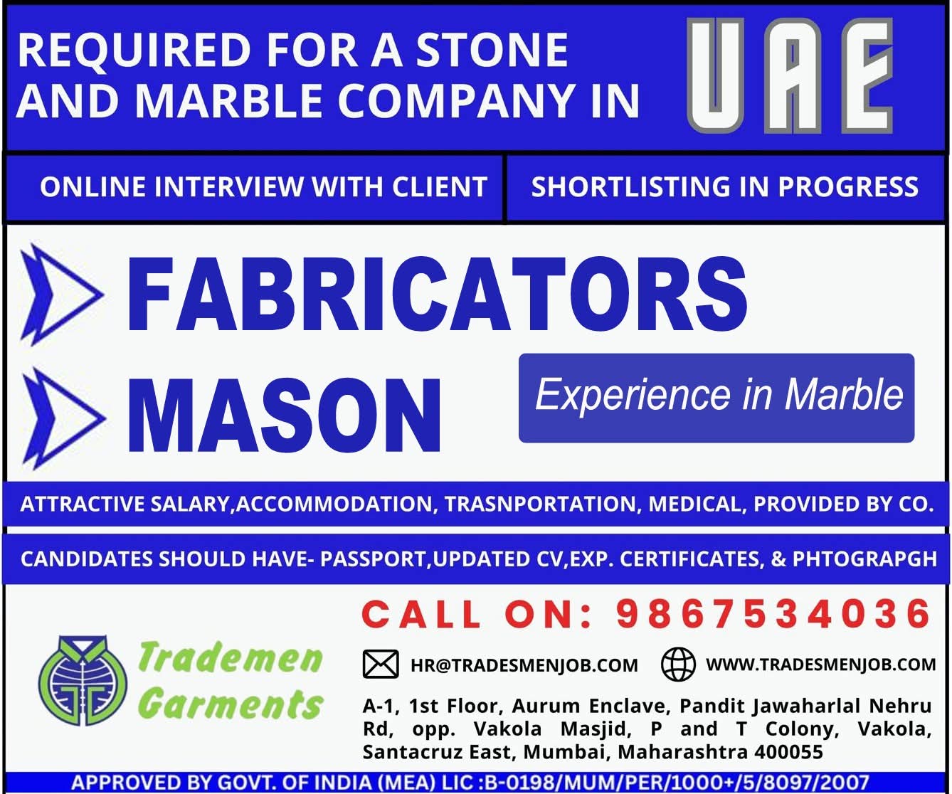 REQUIRED FOR A STONE AND MARBLE COMPANY IN UAE