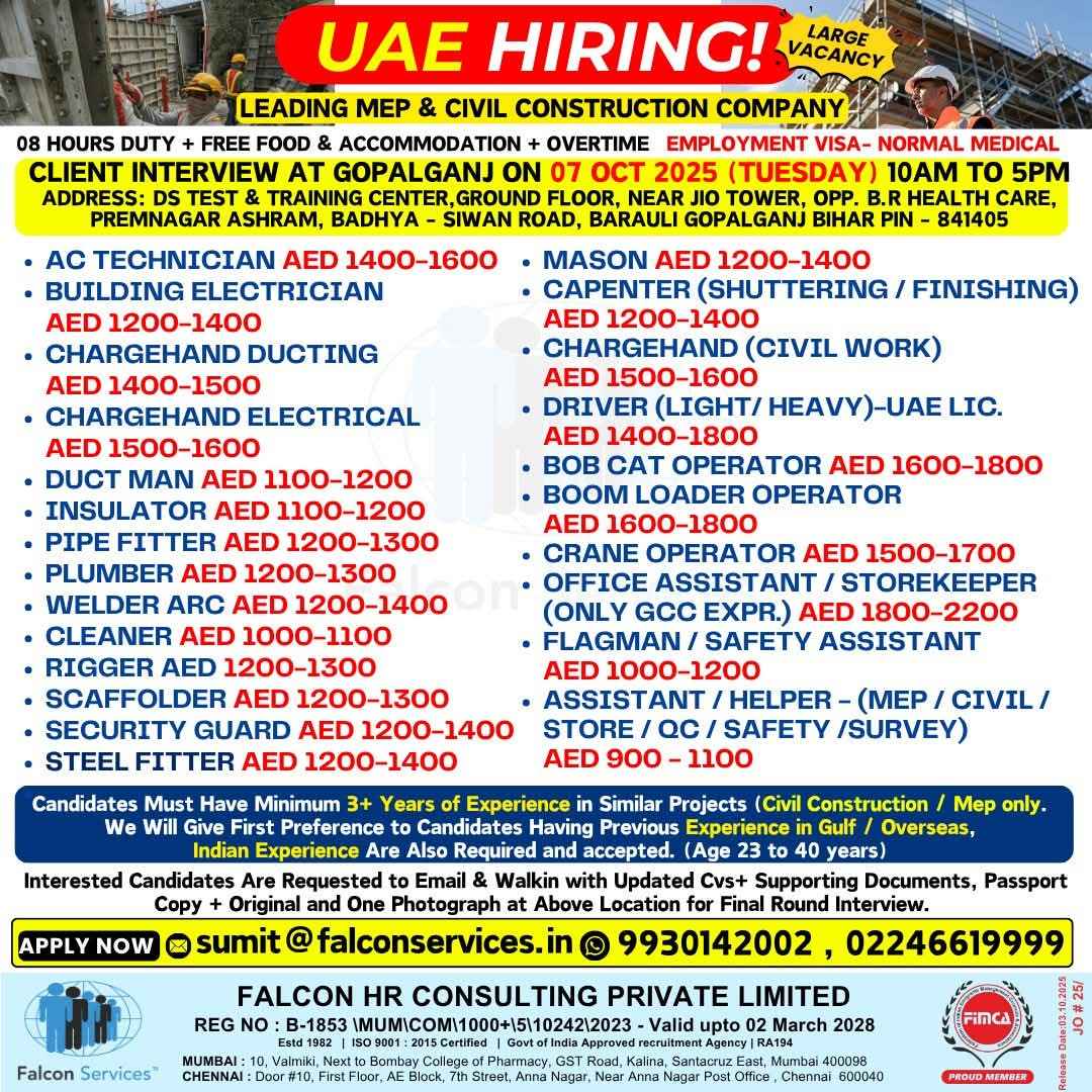 UAE HIRING LEADING MEP & CIVIL CONSTRUCTION COMPANY