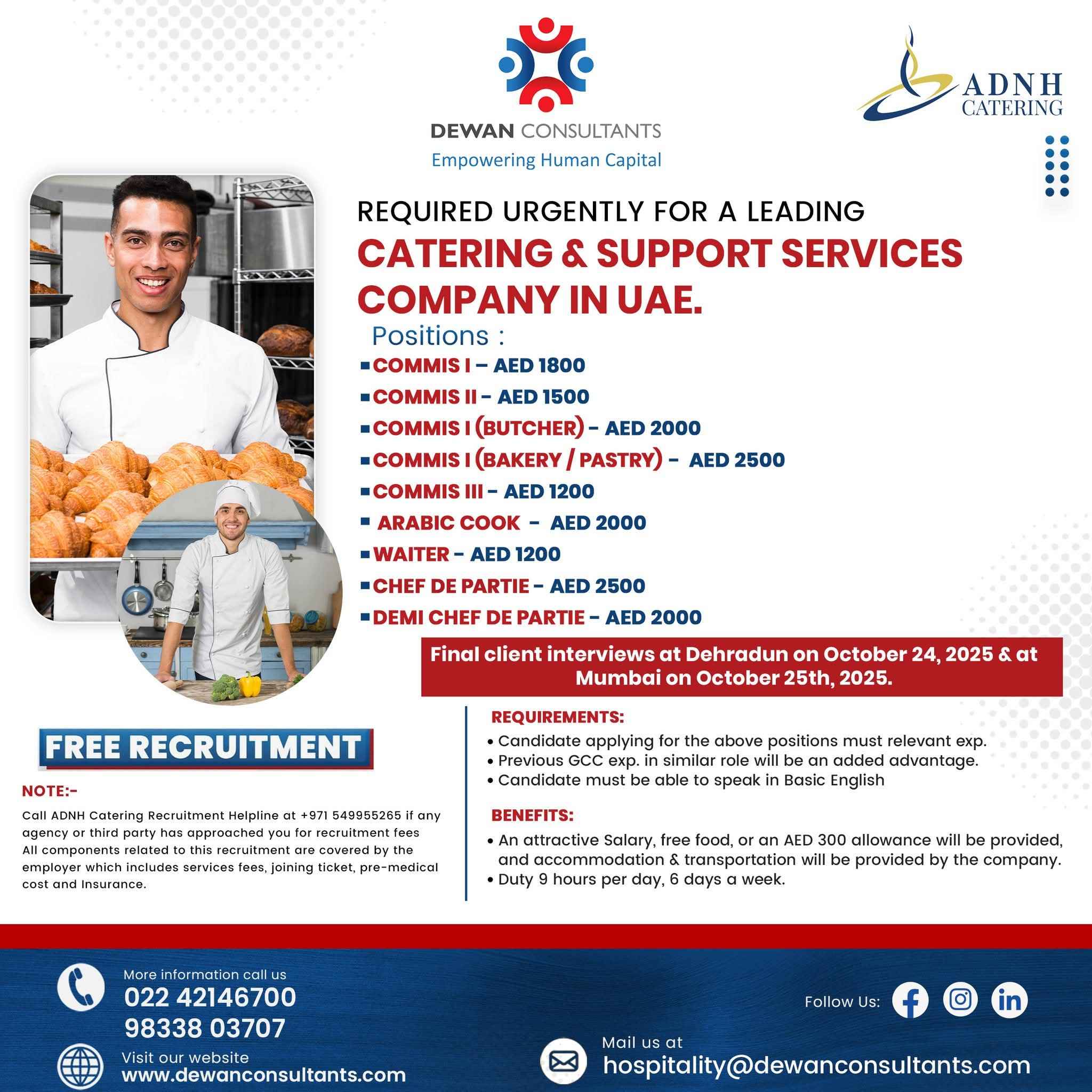 REQUIRED URGENTLY FOR A LEADING CATERING & SUPPORT SERVICES COMPANY IN UAE