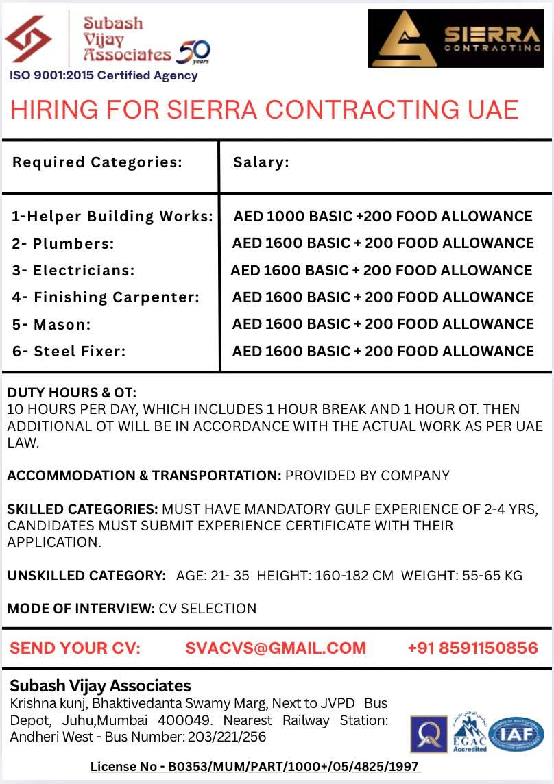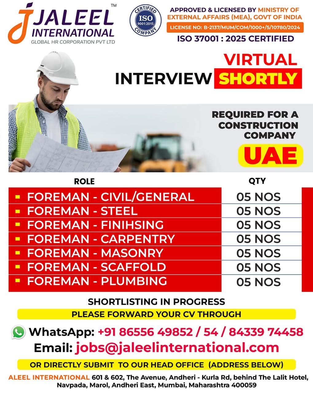 REQUIRED FOR A CONSTRUCTION CO. UAE