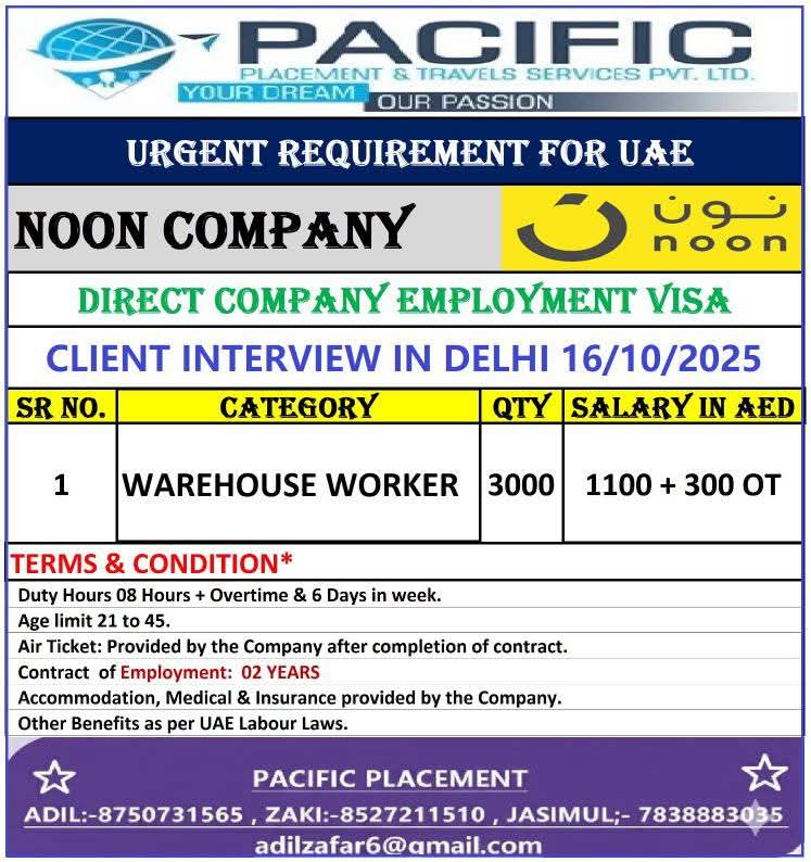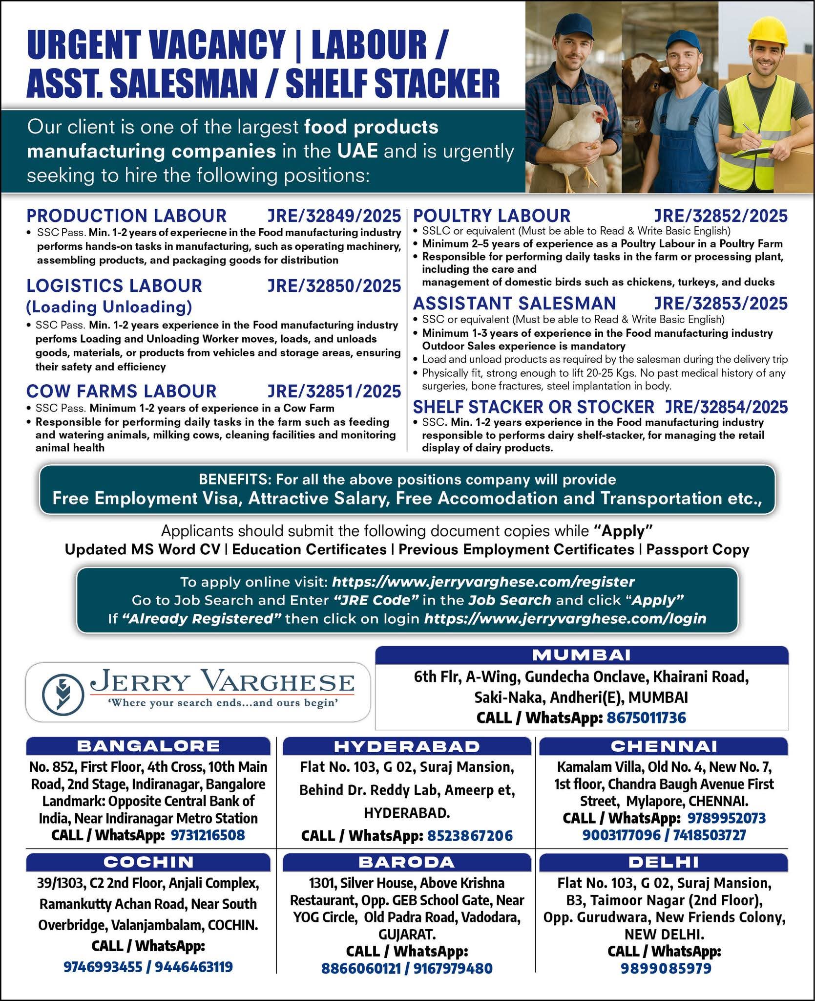 URGENT REQUIREMENTS FOR A MULTINATIONAL COMPANY IN UAE