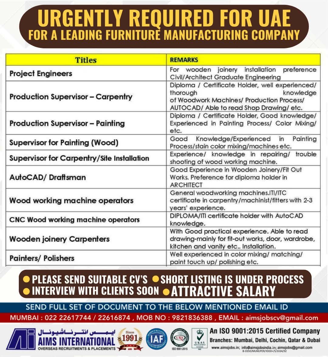 REQUIRED FOR A FURNITURE MAKING CO. IN UAE