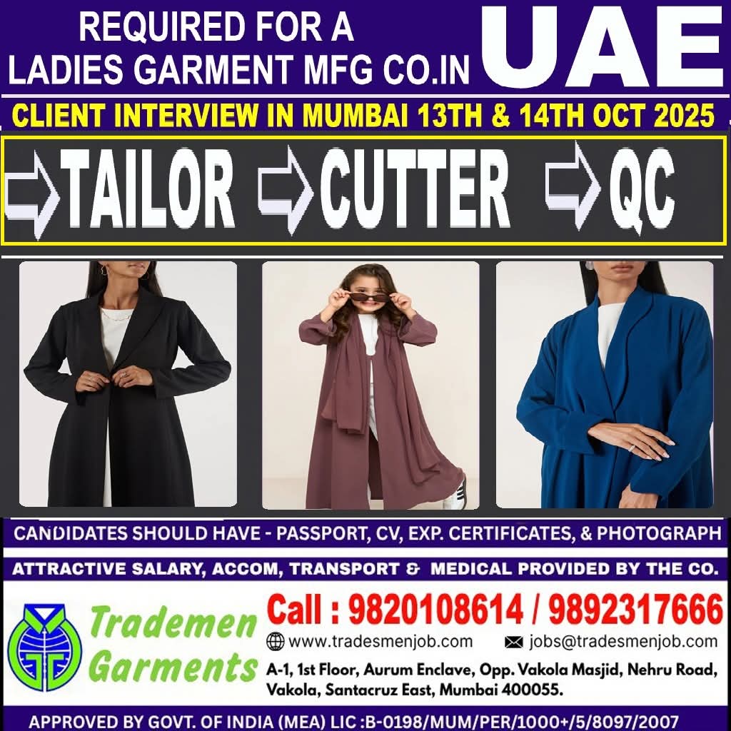 REQUIRED FOR A GARMENT MFG CO. UAE