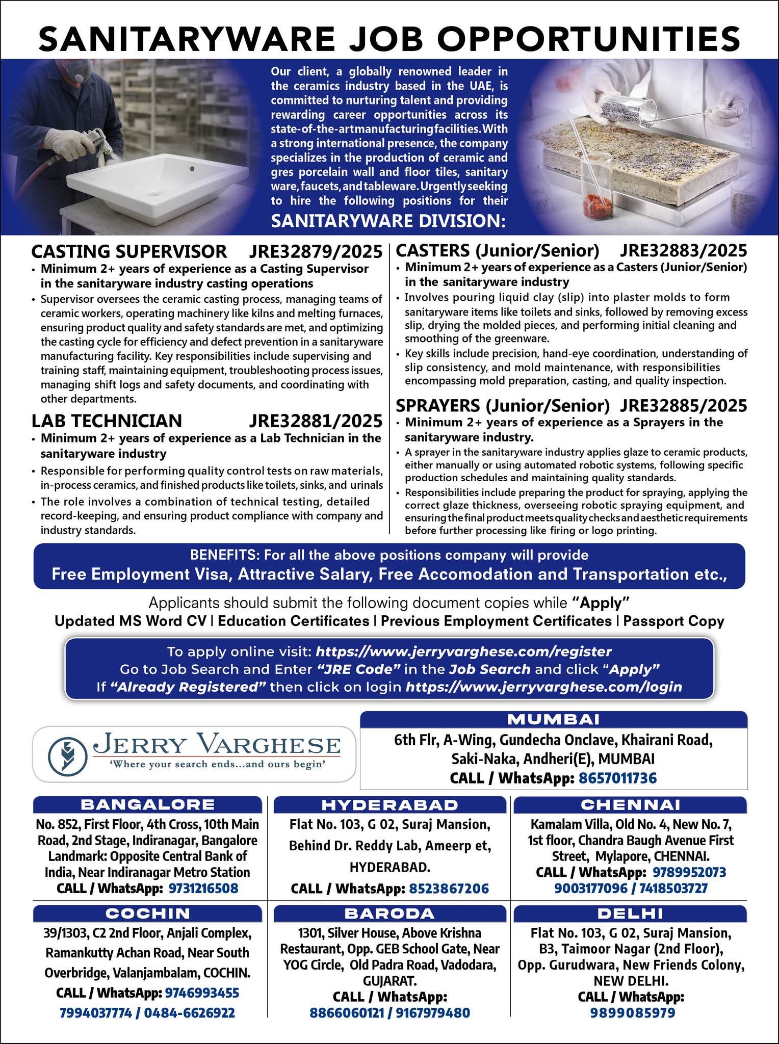 JOB OPPORTUNITIES FOR CERAMICS INDUSTRY UAE