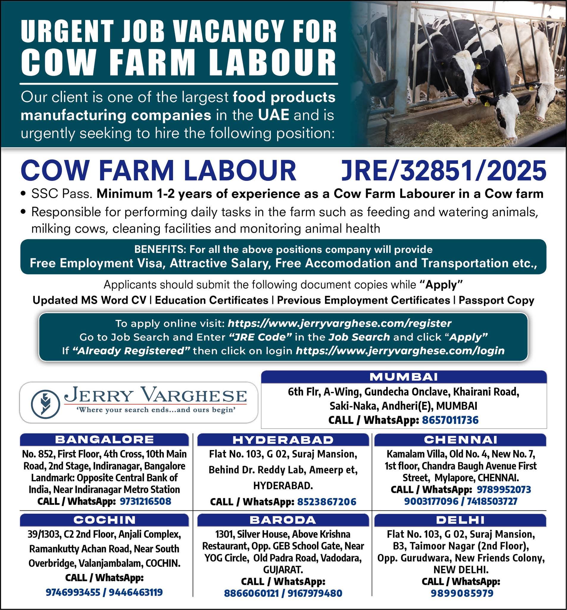 URGENTLY REQUIRED FOR UAE FOR A LEADING COMPANY