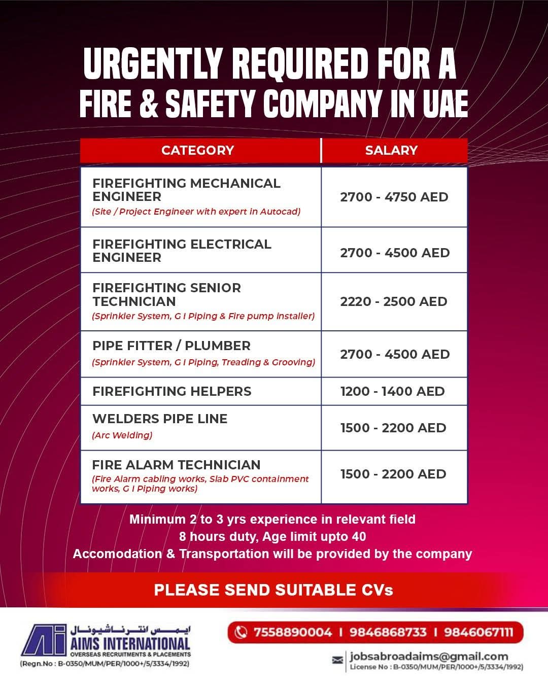 URGENTLY REQUIRED FOR A FIRE & SAFETY COMPANY IN UAE