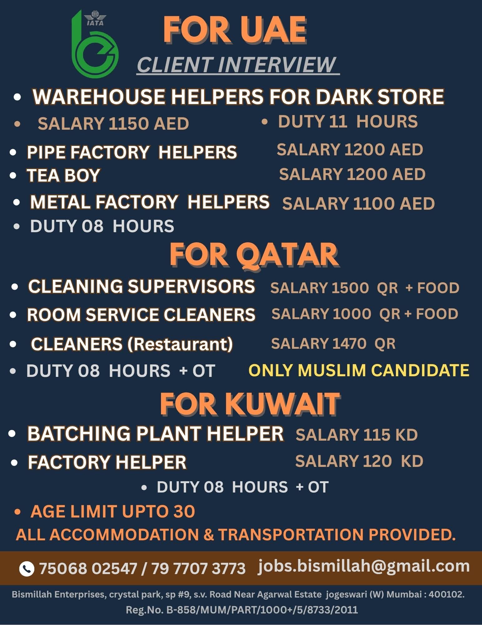 CLIENT INTERVIEW ON 28TH JULY 2025 WE ARE HIRING FOR UAE