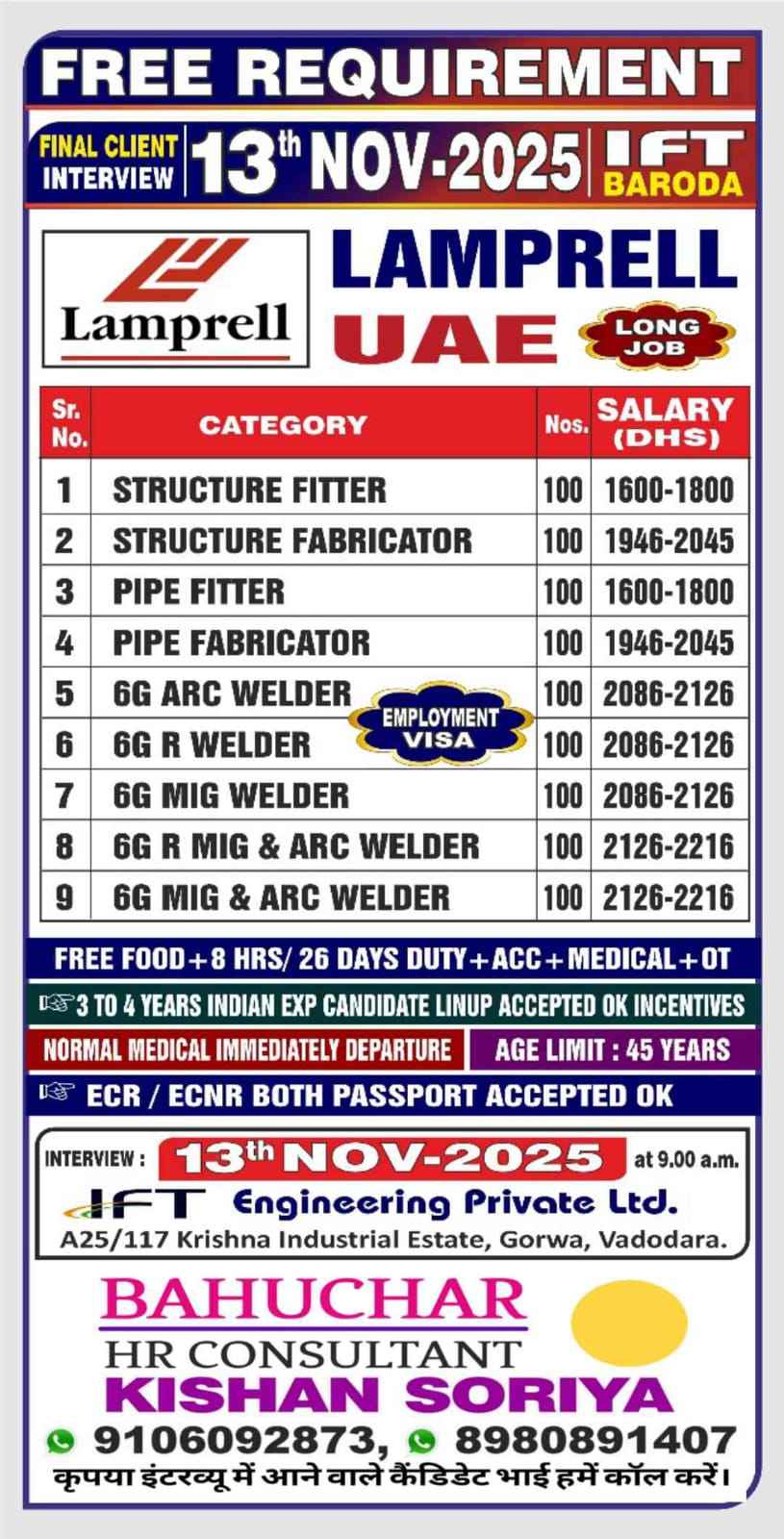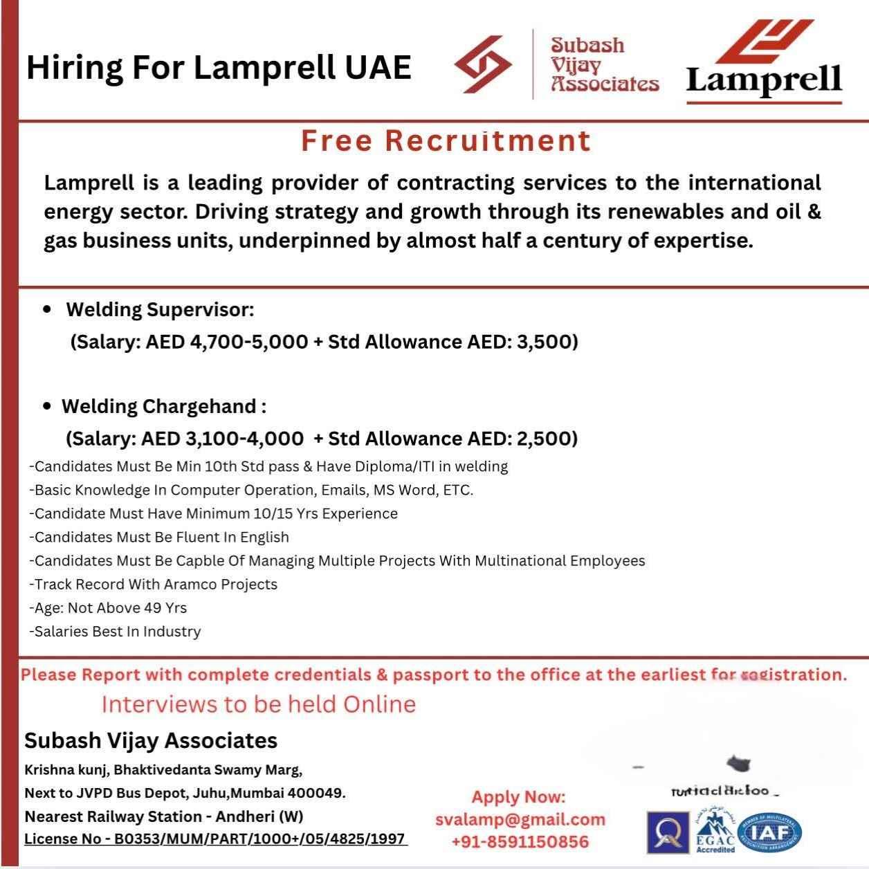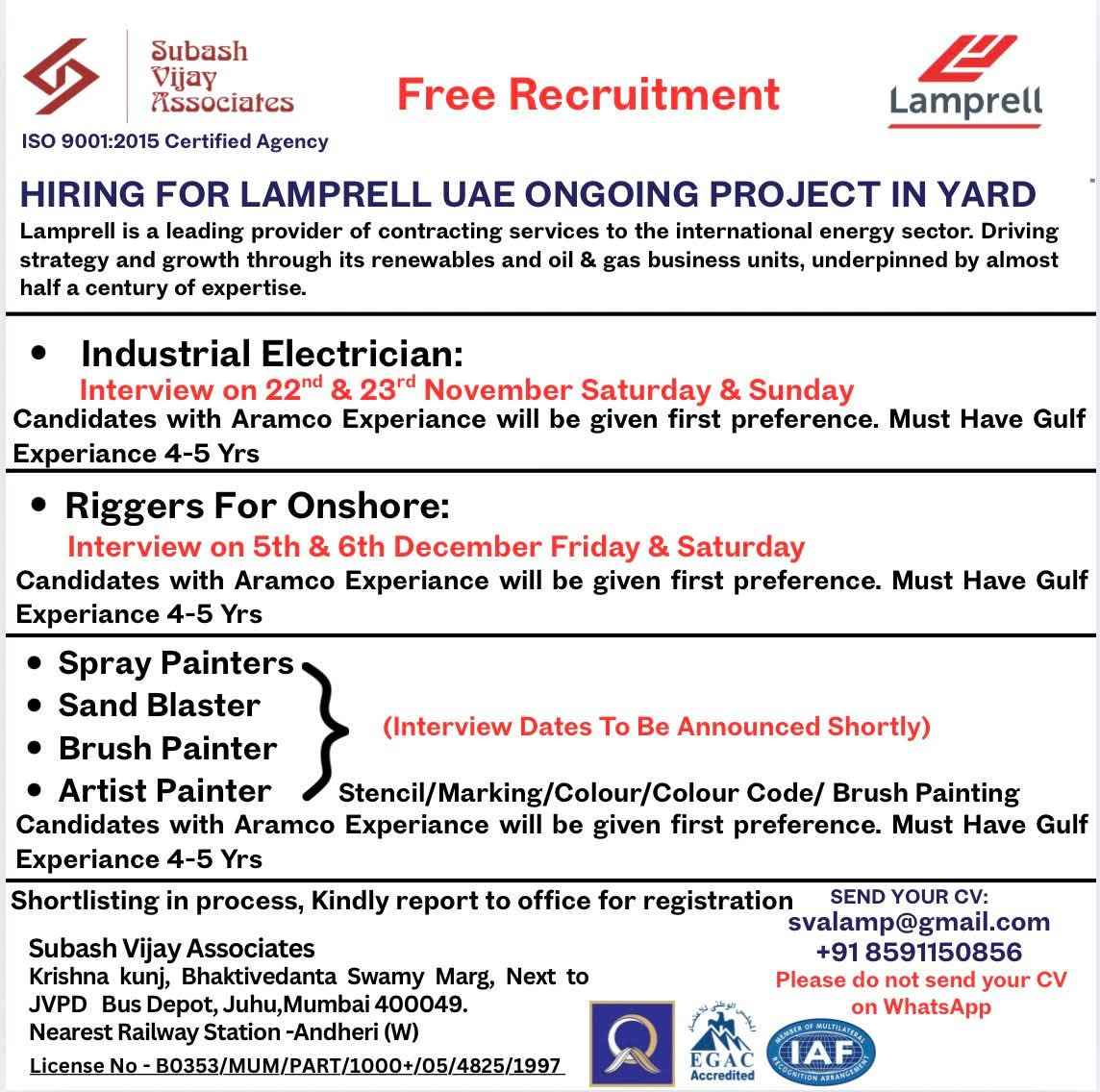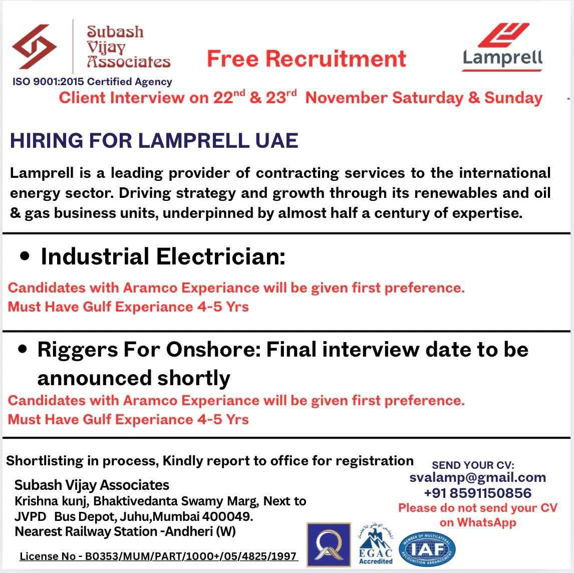 HIRING FOR LAMPRELL UAE