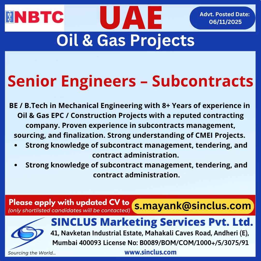 URGENTLY REQUIRED FOR A REPUTED COMPANY (Adnoc Project) in UAE