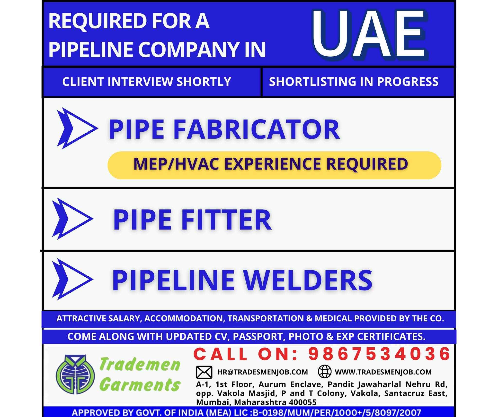 REQUIRED FOR A PIPELINE COMPANY IN UAE