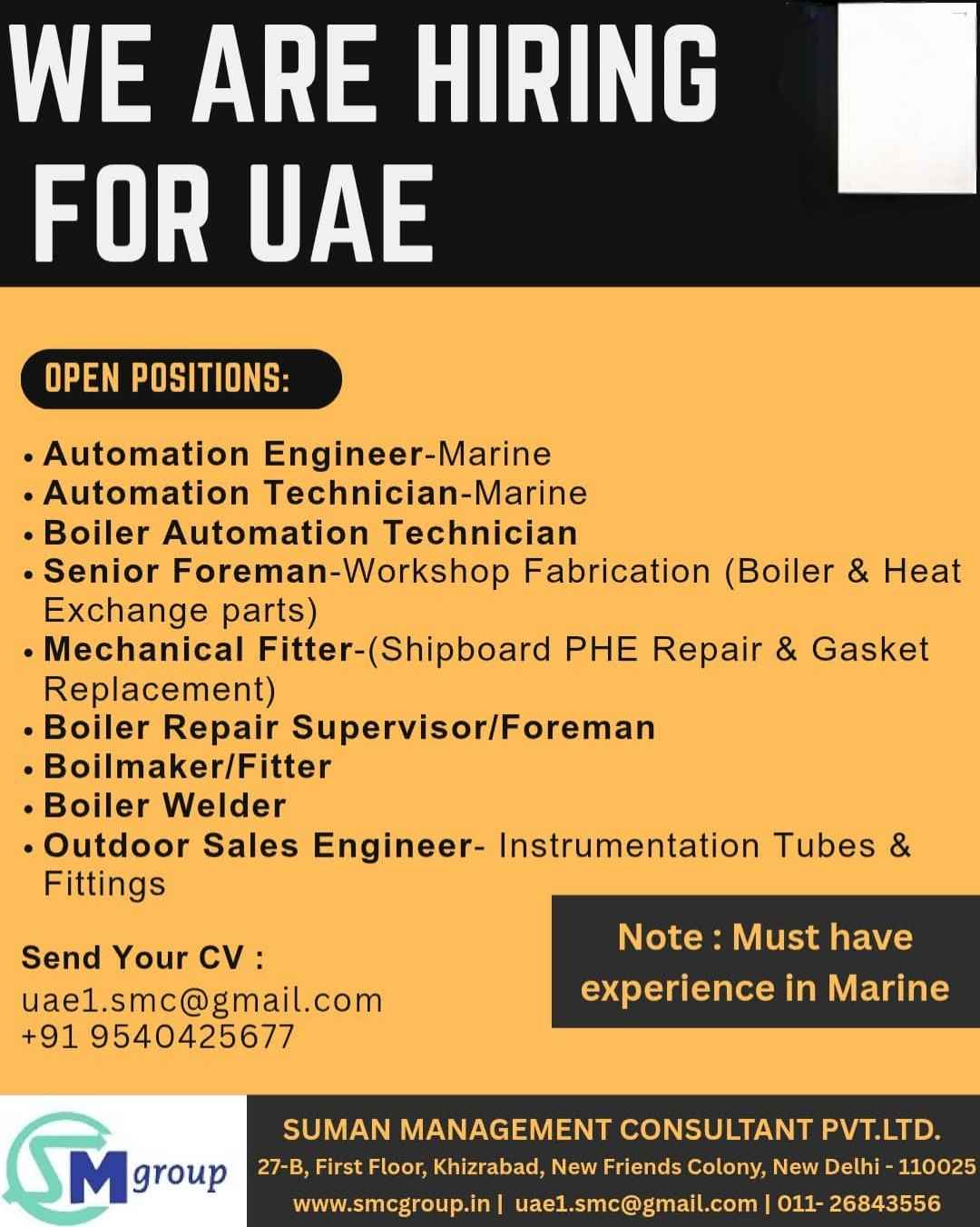 We are Hiring for UAE